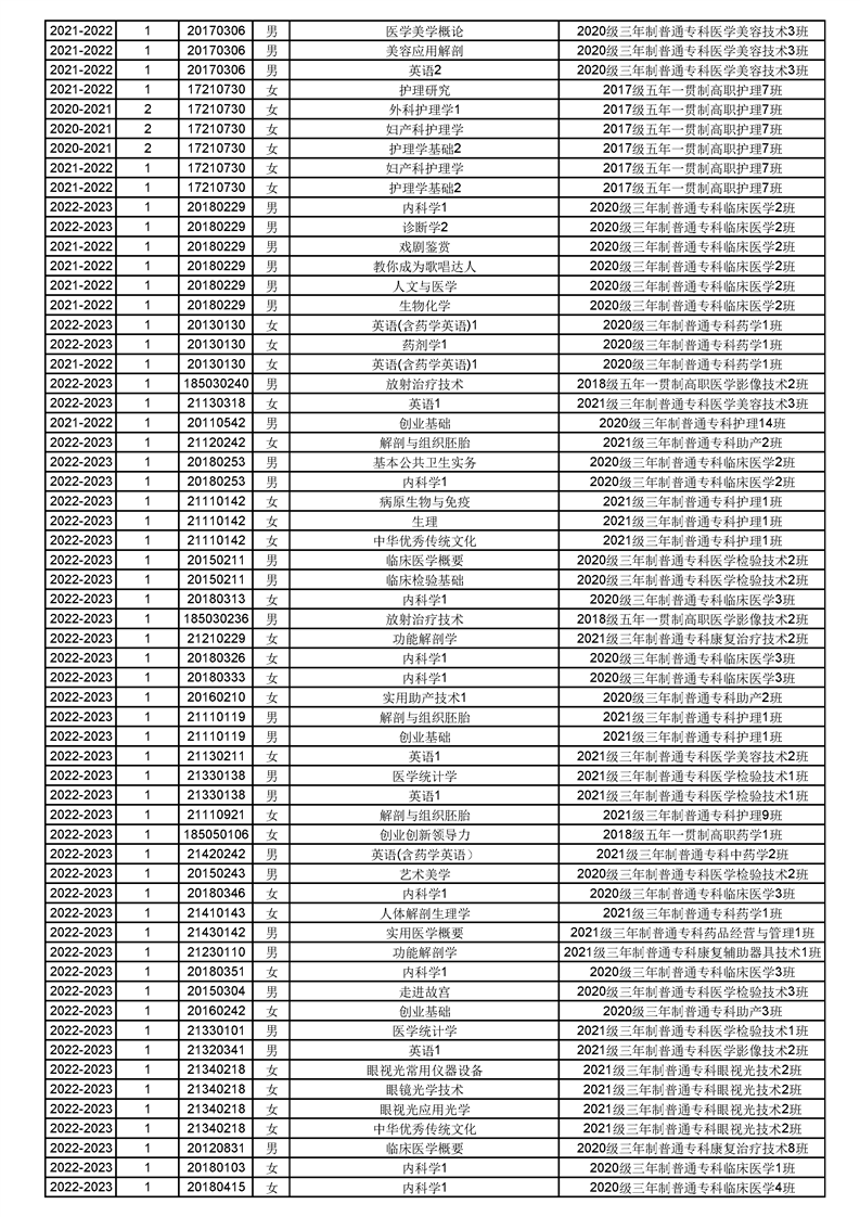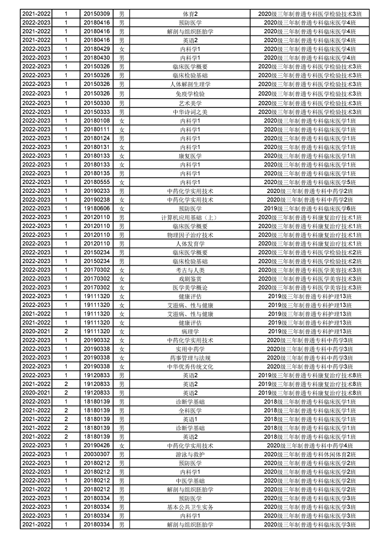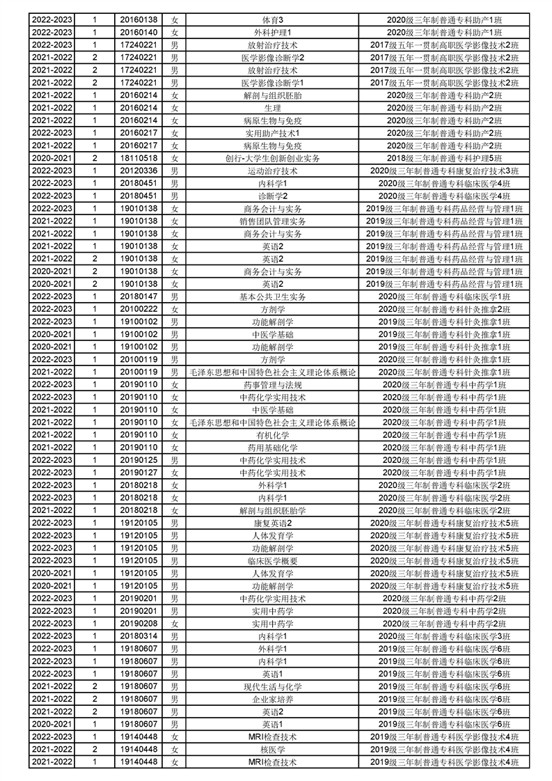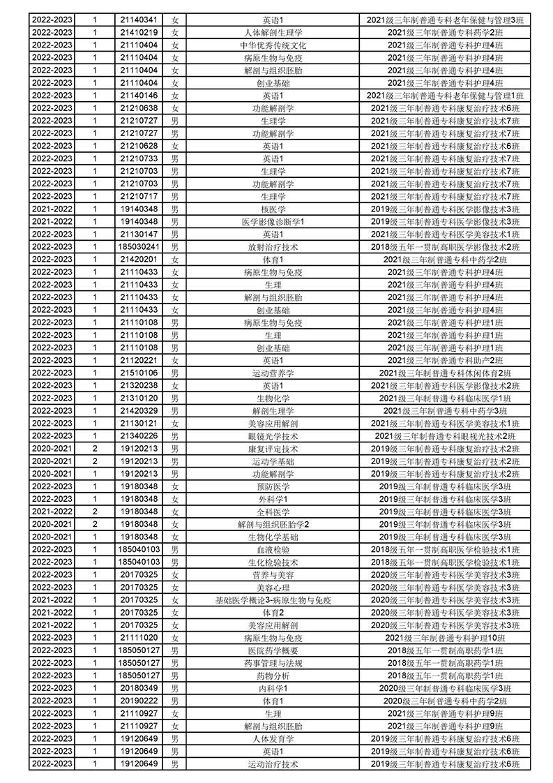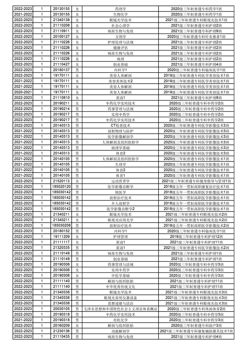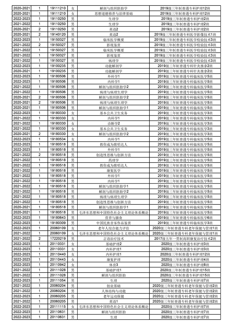 taptap点点体育2022-2023(1)学期课程重修名单