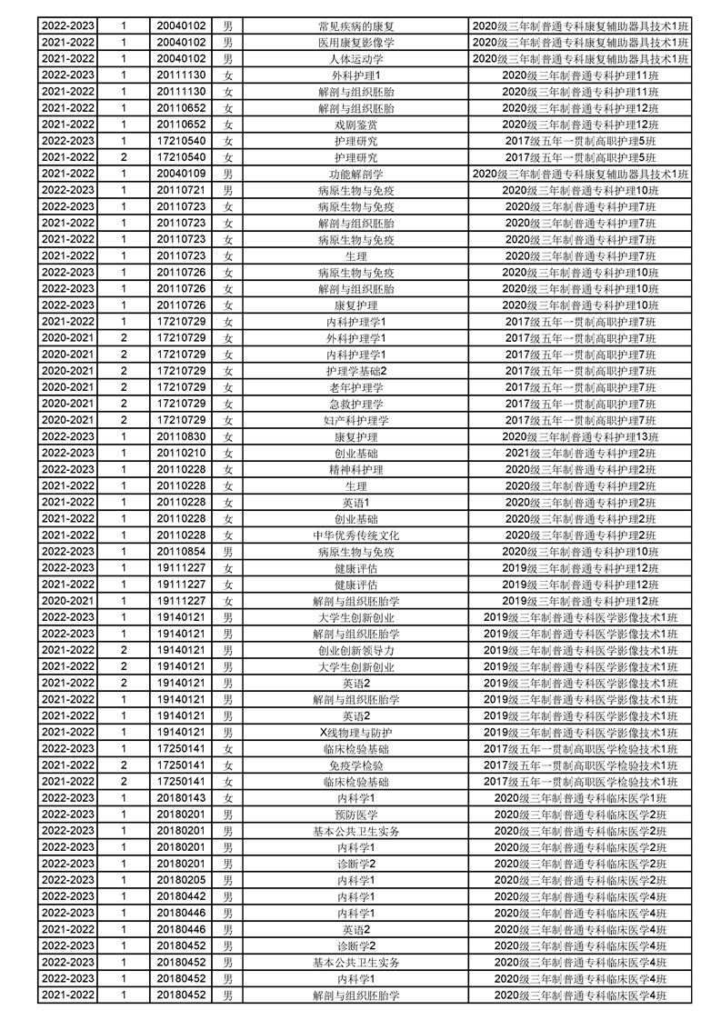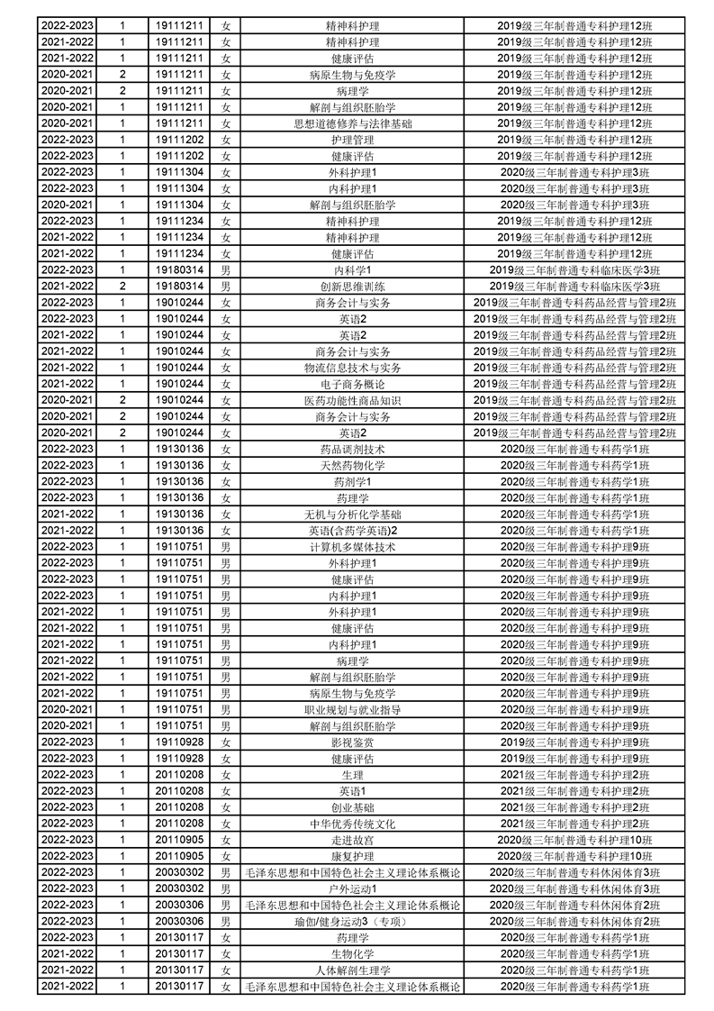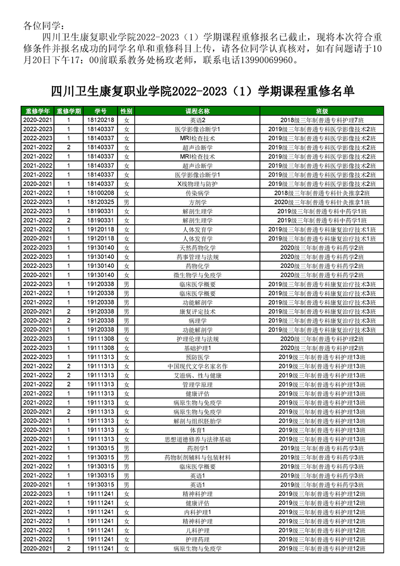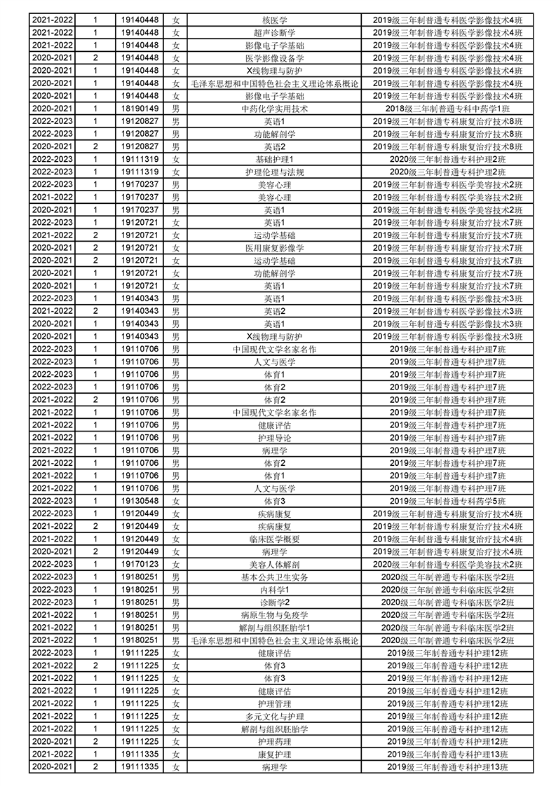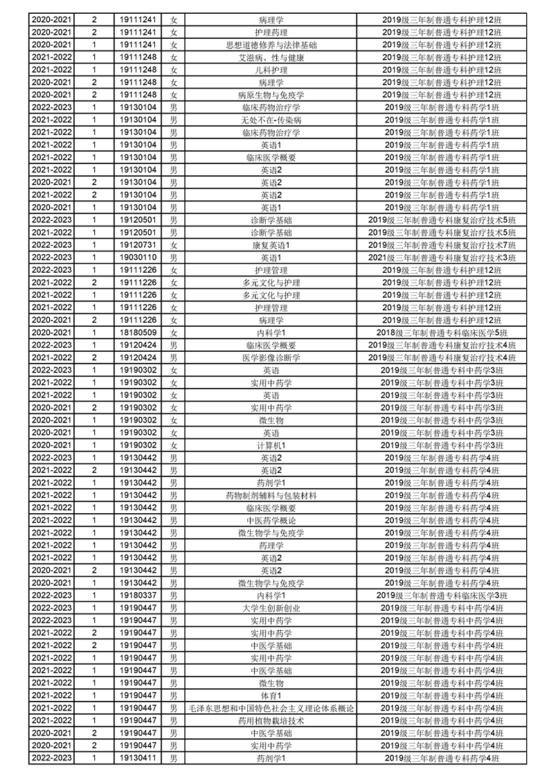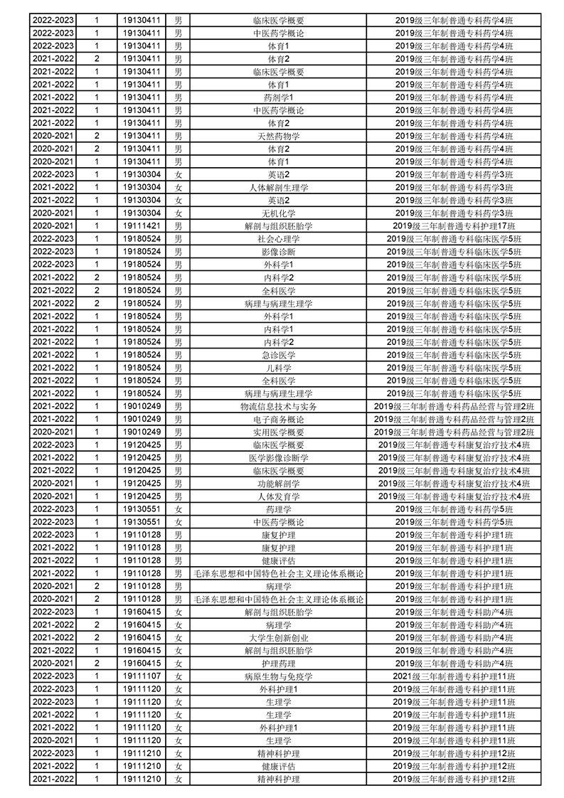 taptap点点体育2022-2023(1)学期课程重修名单