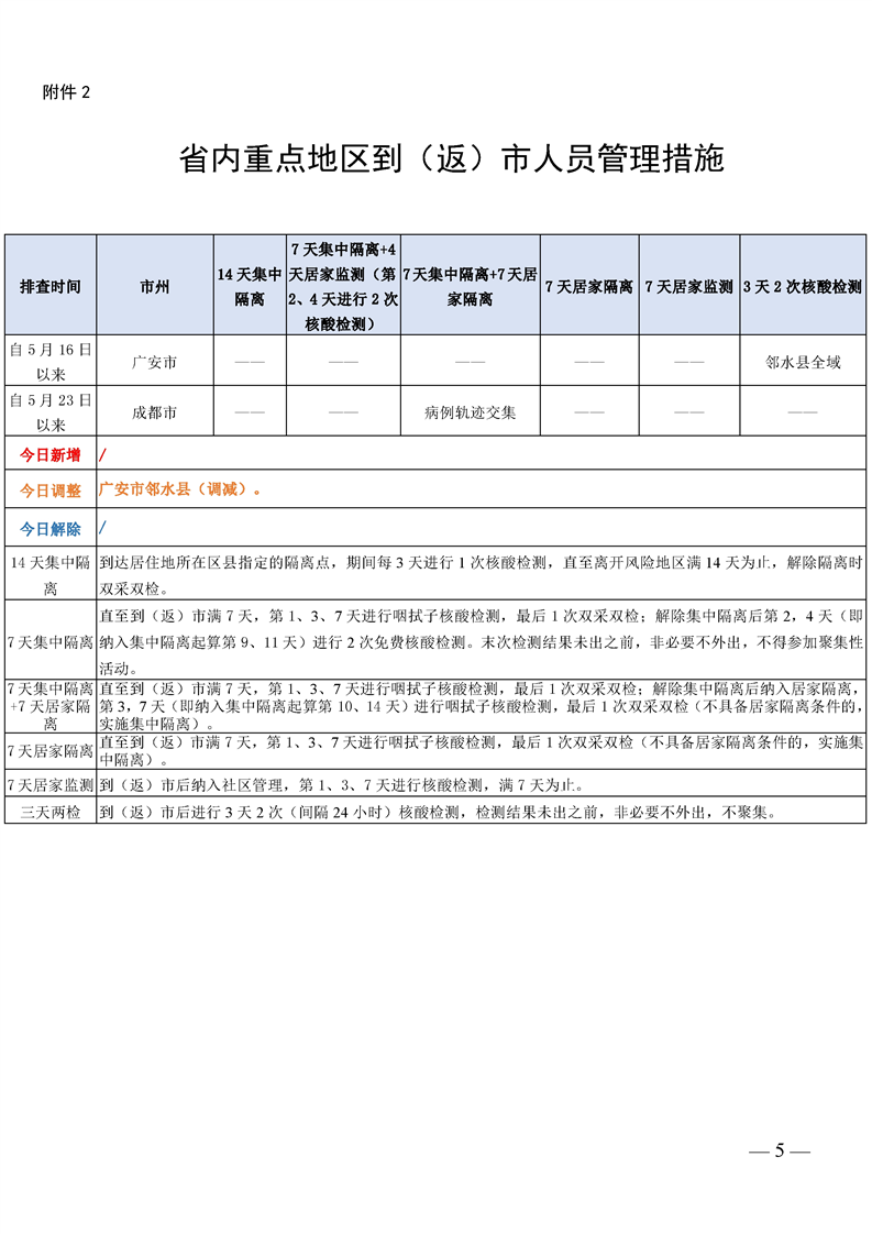 关于国内重点地区名单暨 重点地区到(返)市人员管控措施