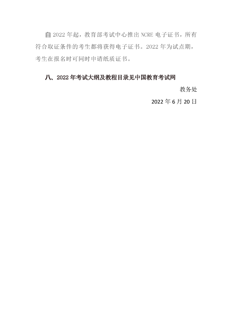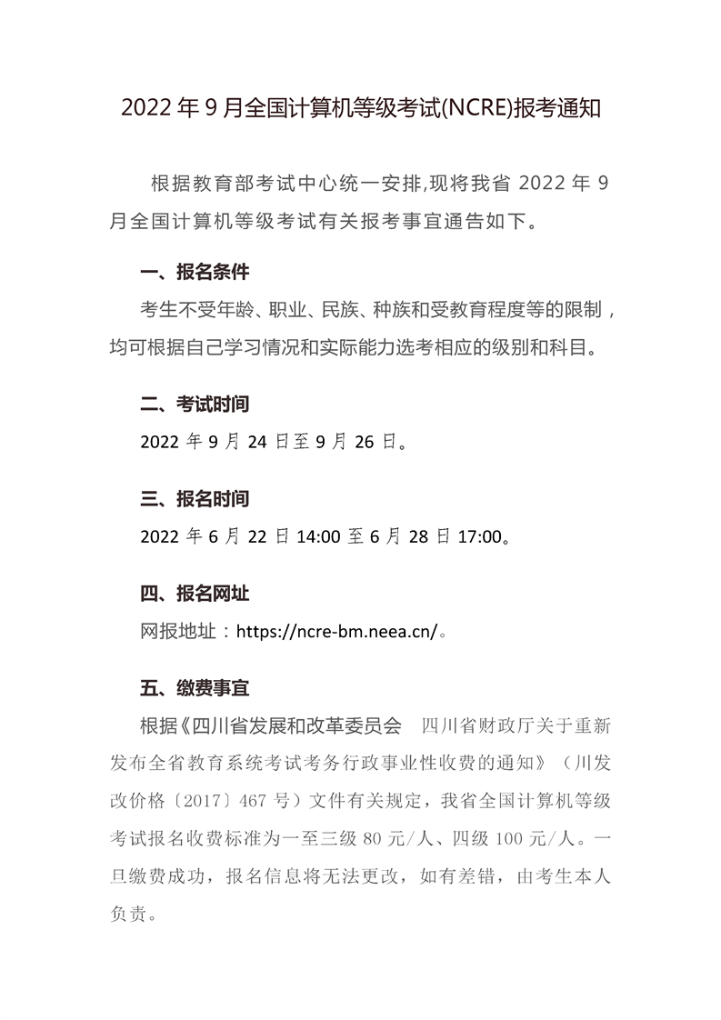 2022年9月全国计算机等级考试(NCRE)报考通知