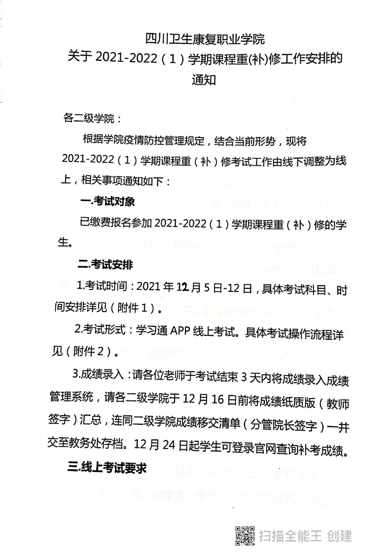 关于2021-2022(1)学期课程重(补)修工作安排的通知