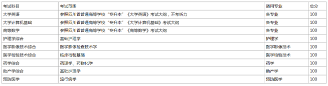 (二)2021年专升本考试时间为5月22日至23日,考试地点为川北医学院高坪校区,具体考试安排见准考证。考试科目如下: