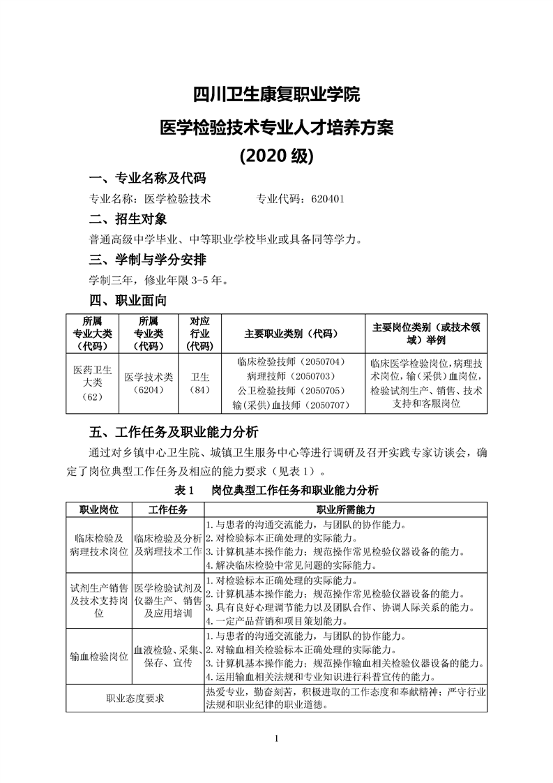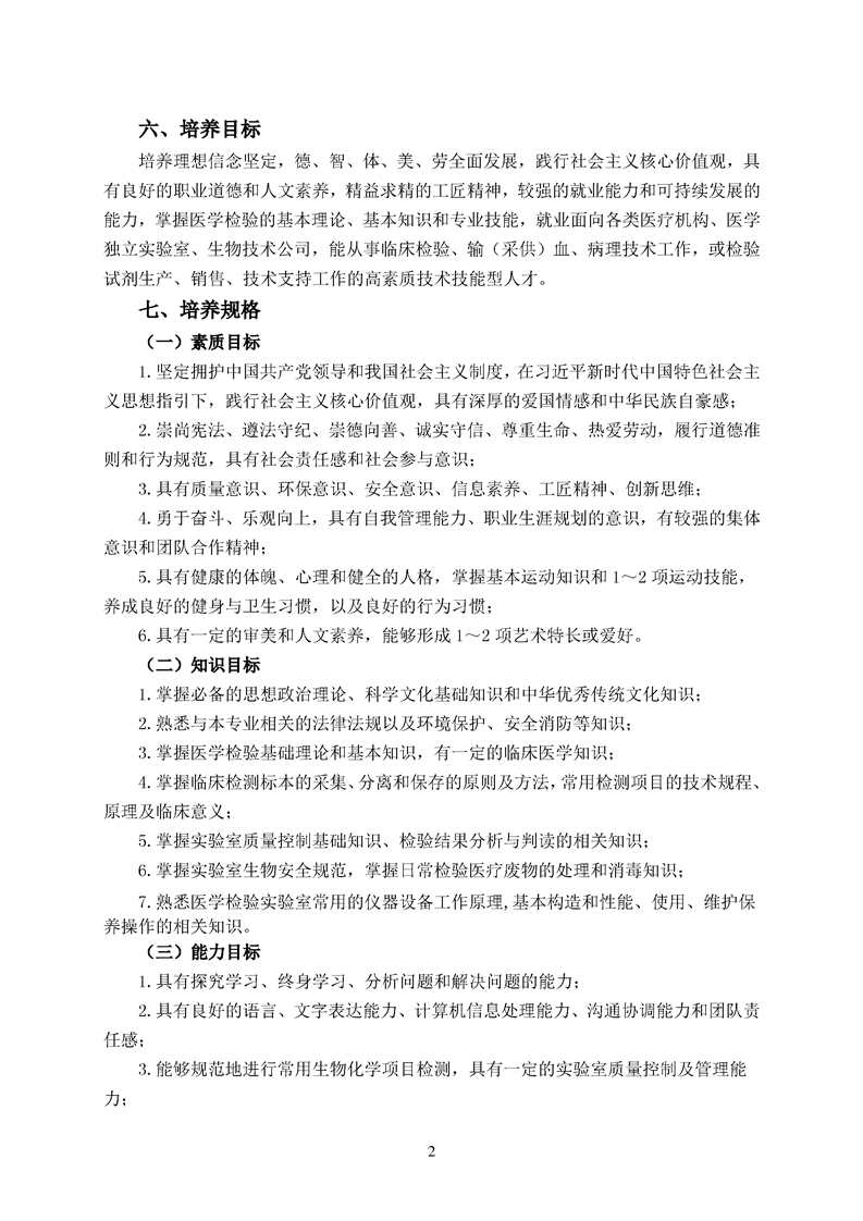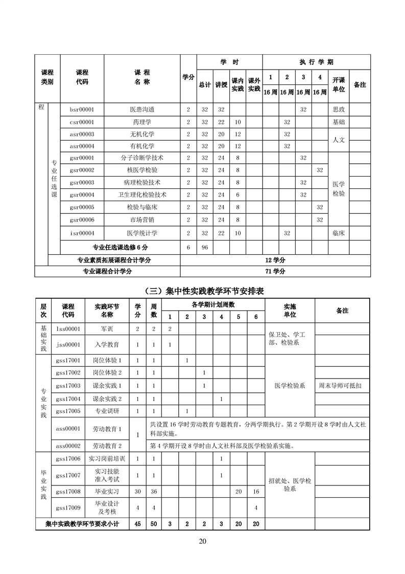 2020级医学检验技术专业人才培养方案