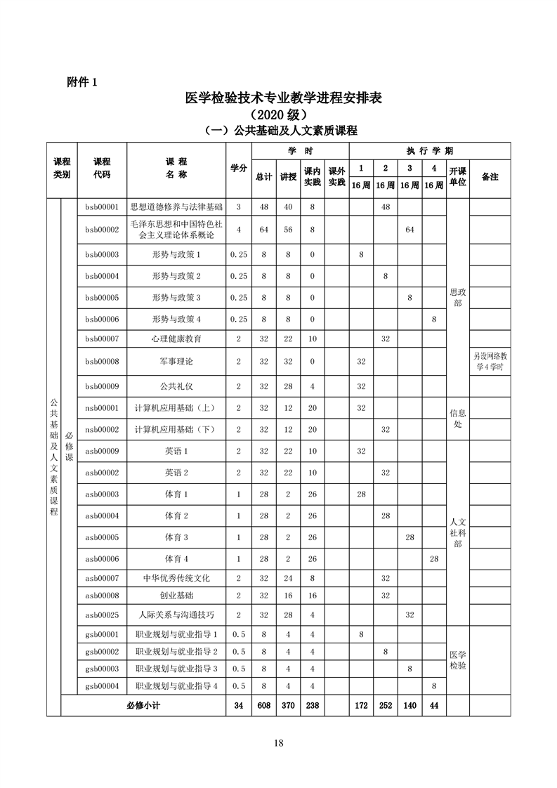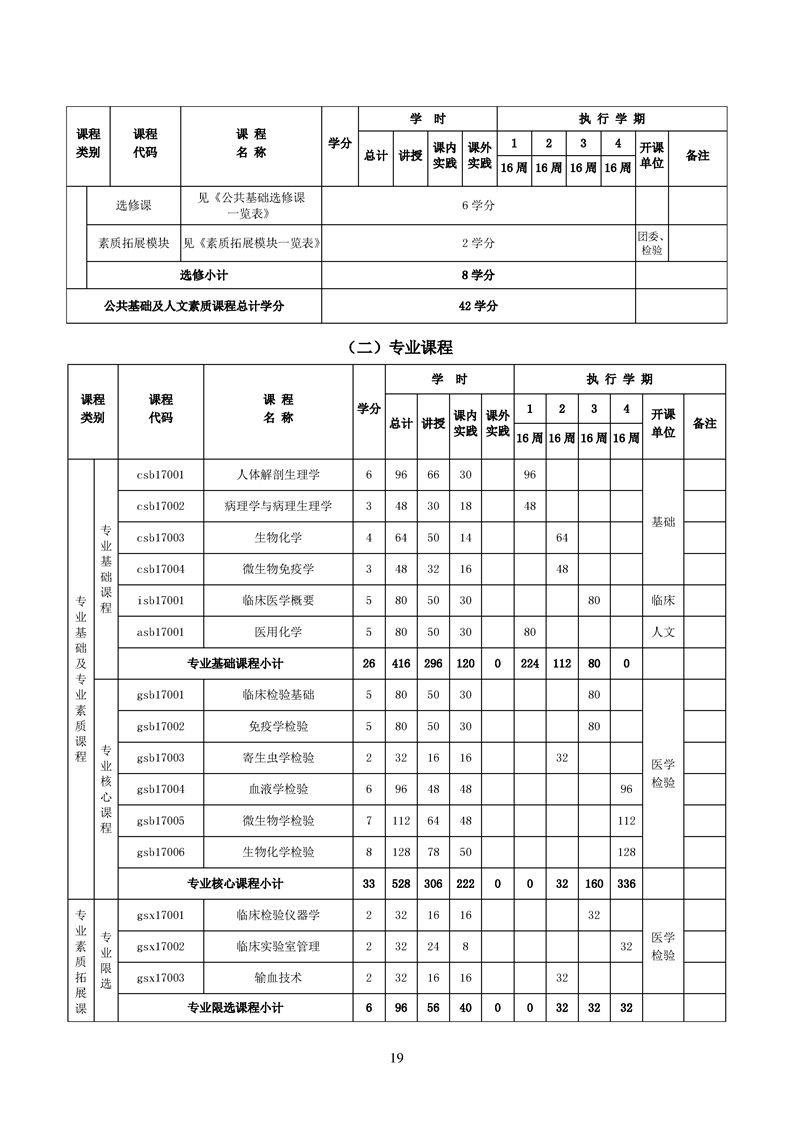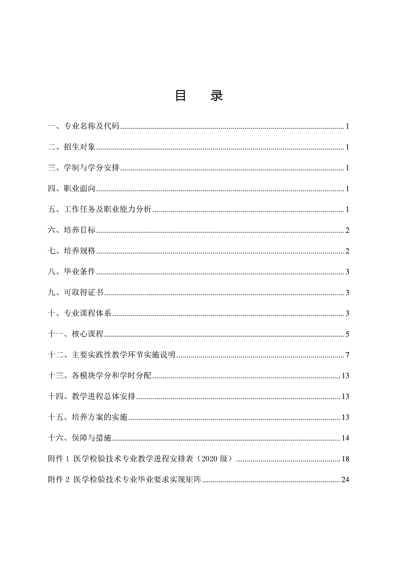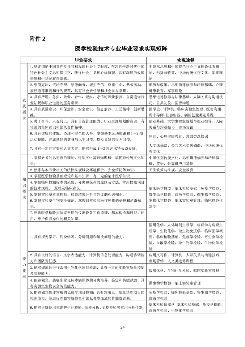 2020级医学检验技术专业人才培养方案