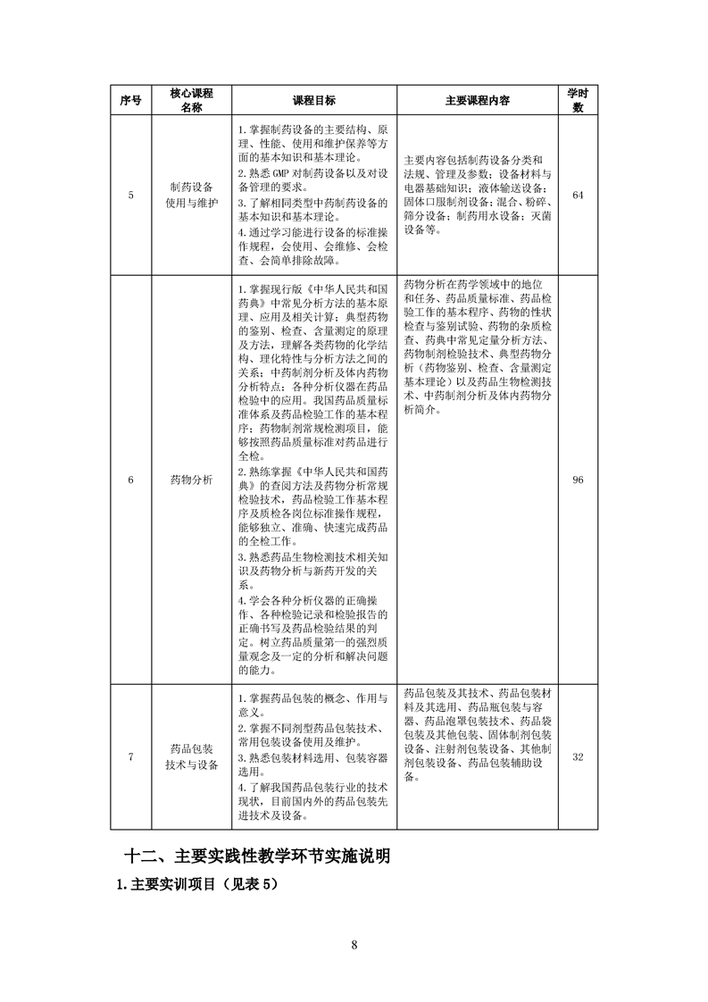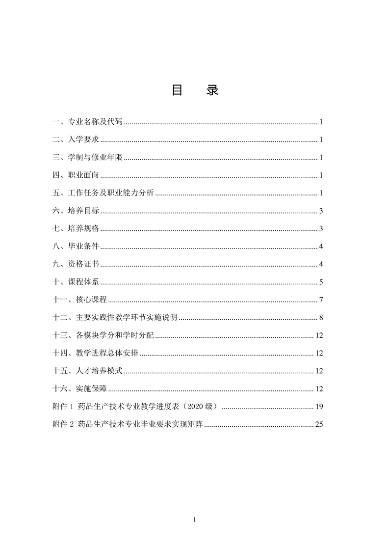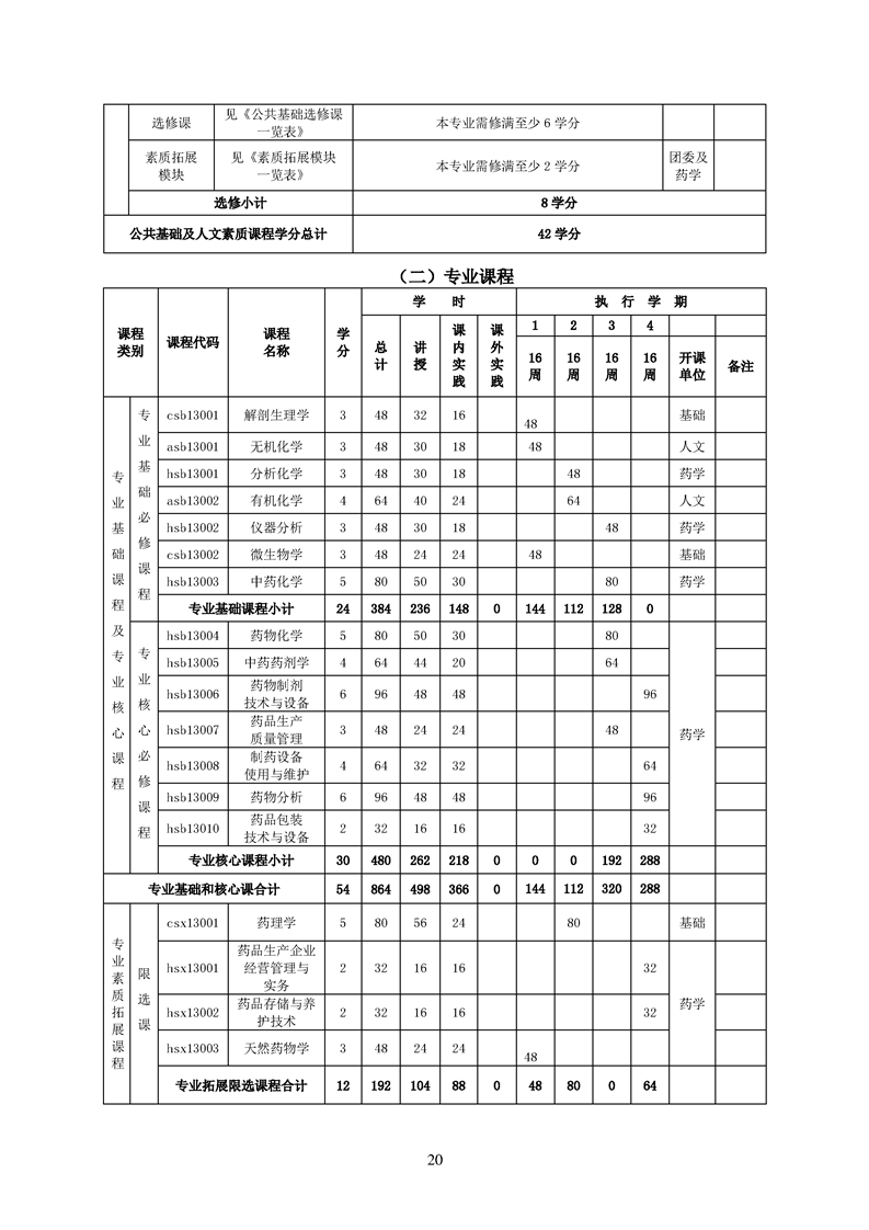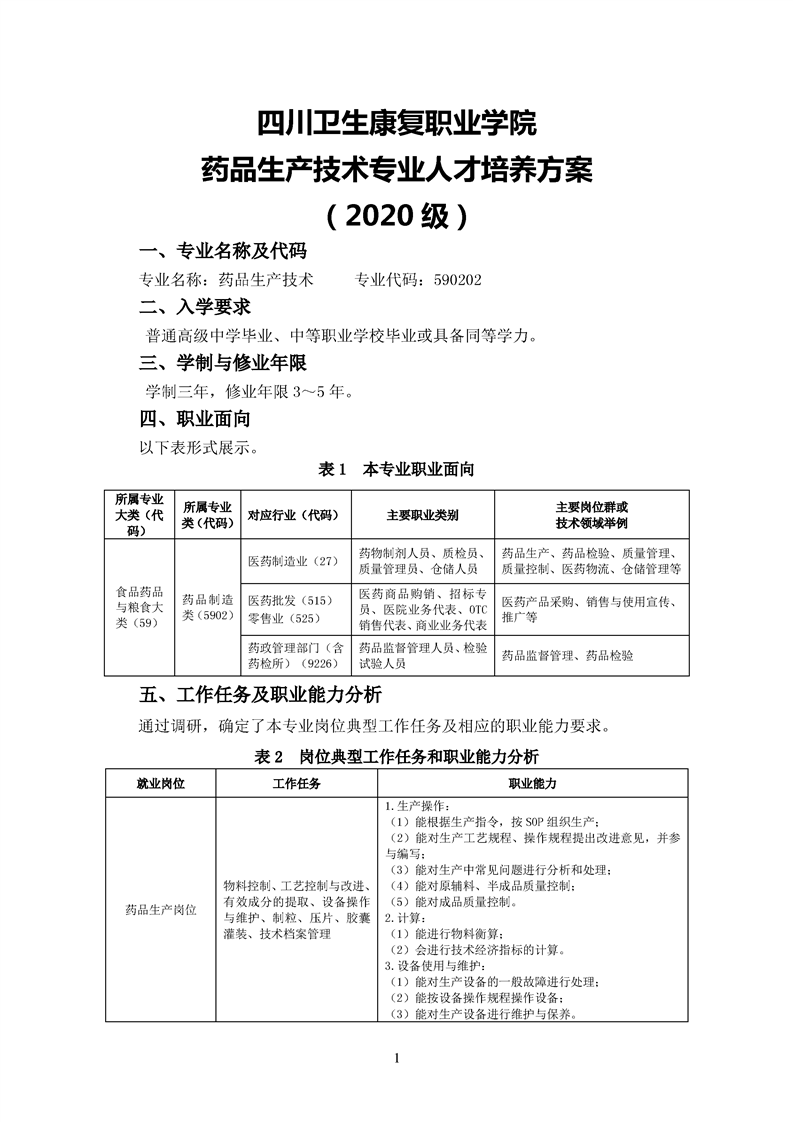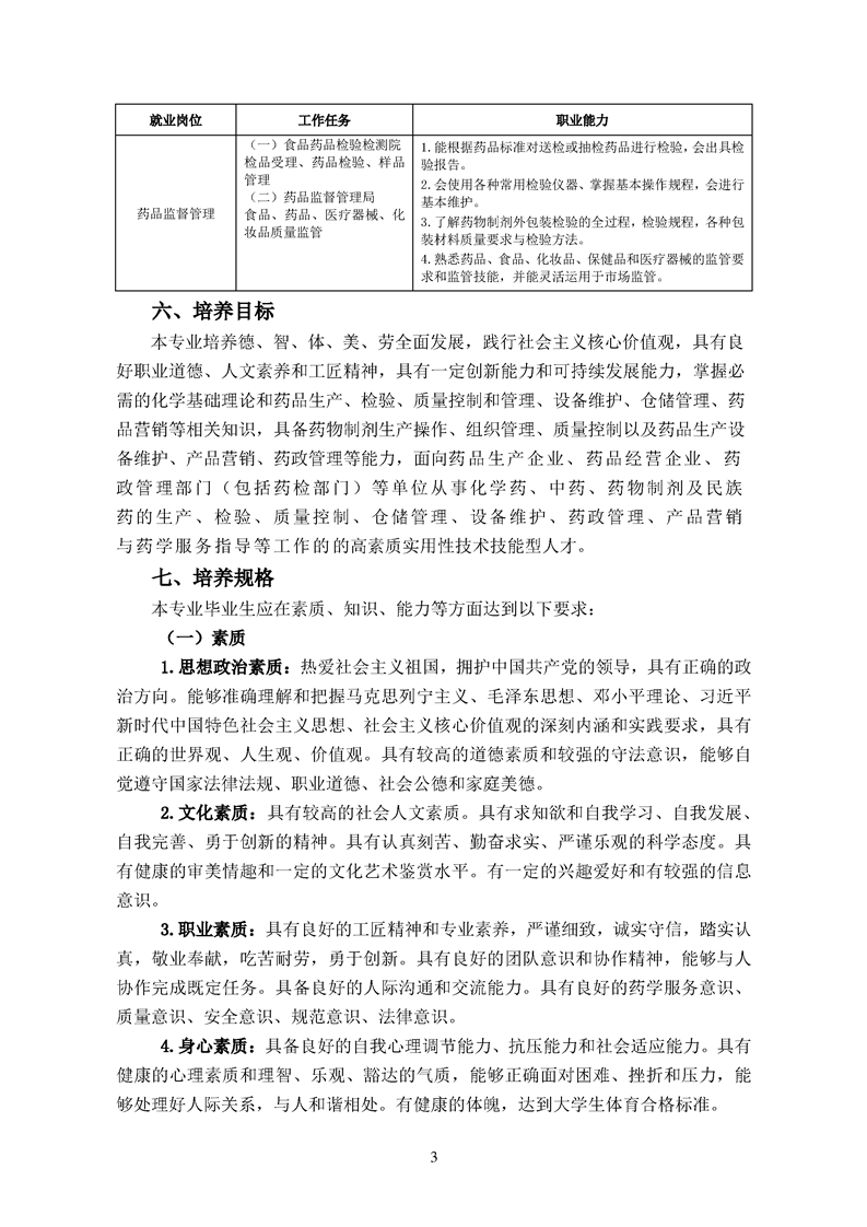 2020级药品生产技术专业人才培养方案