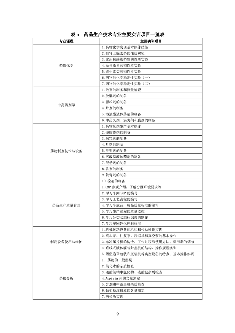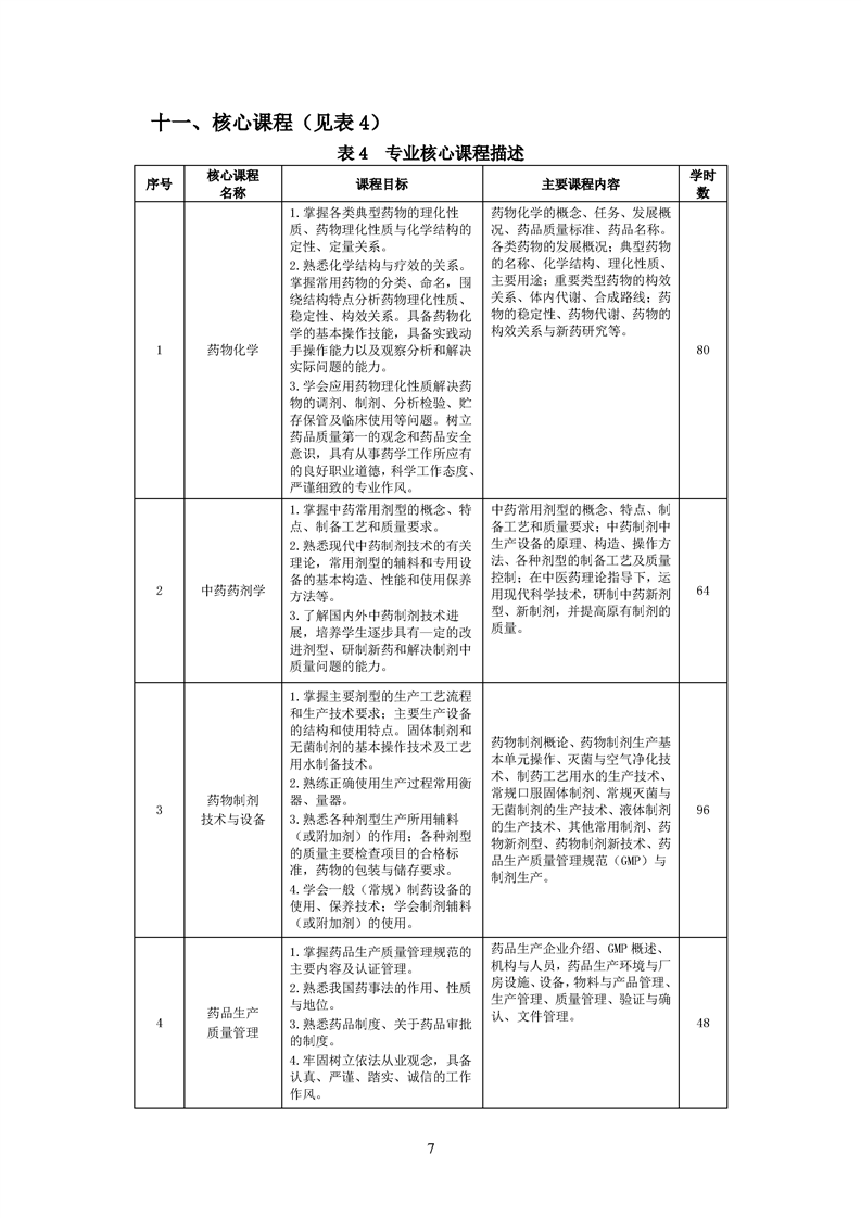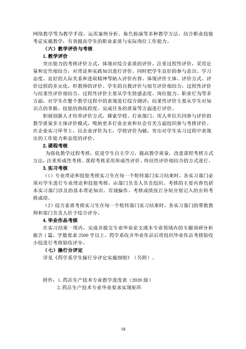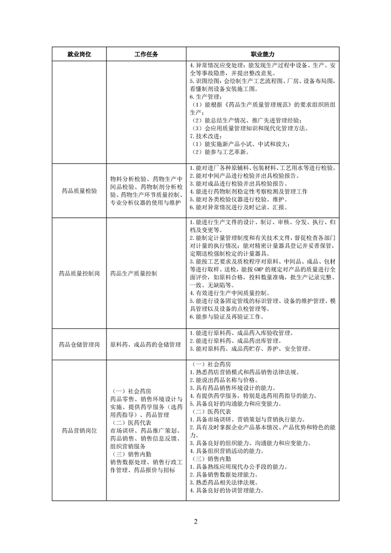 2020级药品生产技术专业人才培养方案