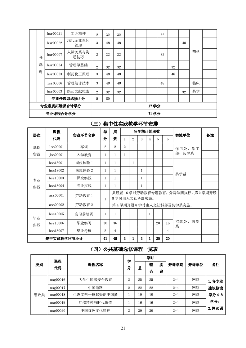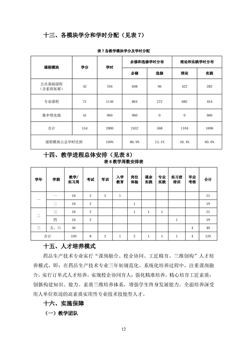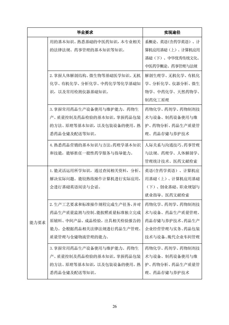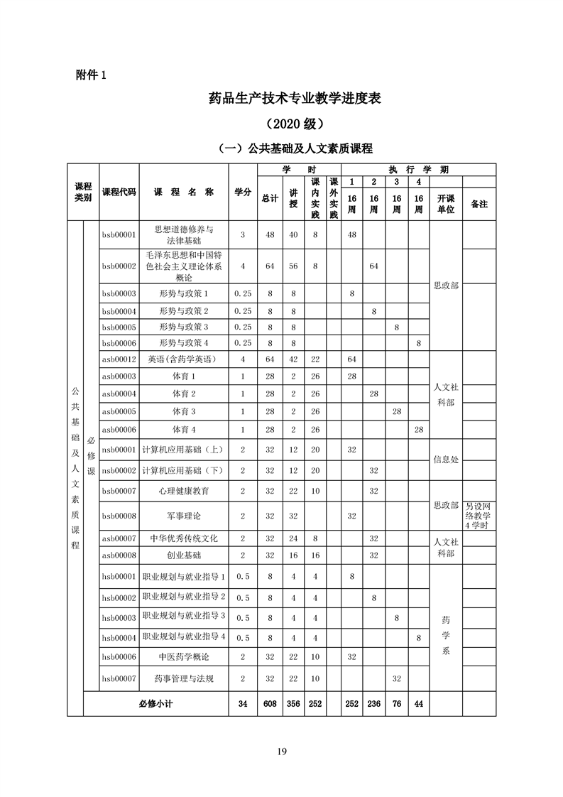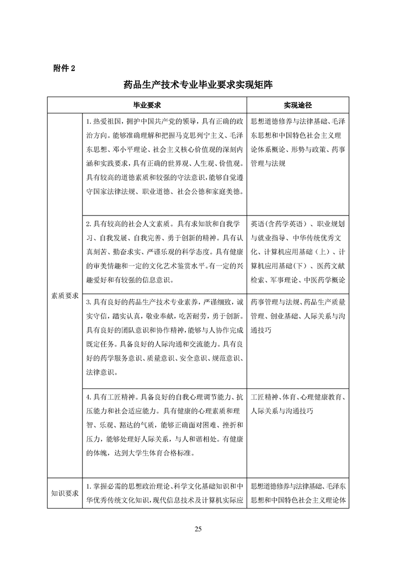 2020级药品生产技术专业人才培养方案