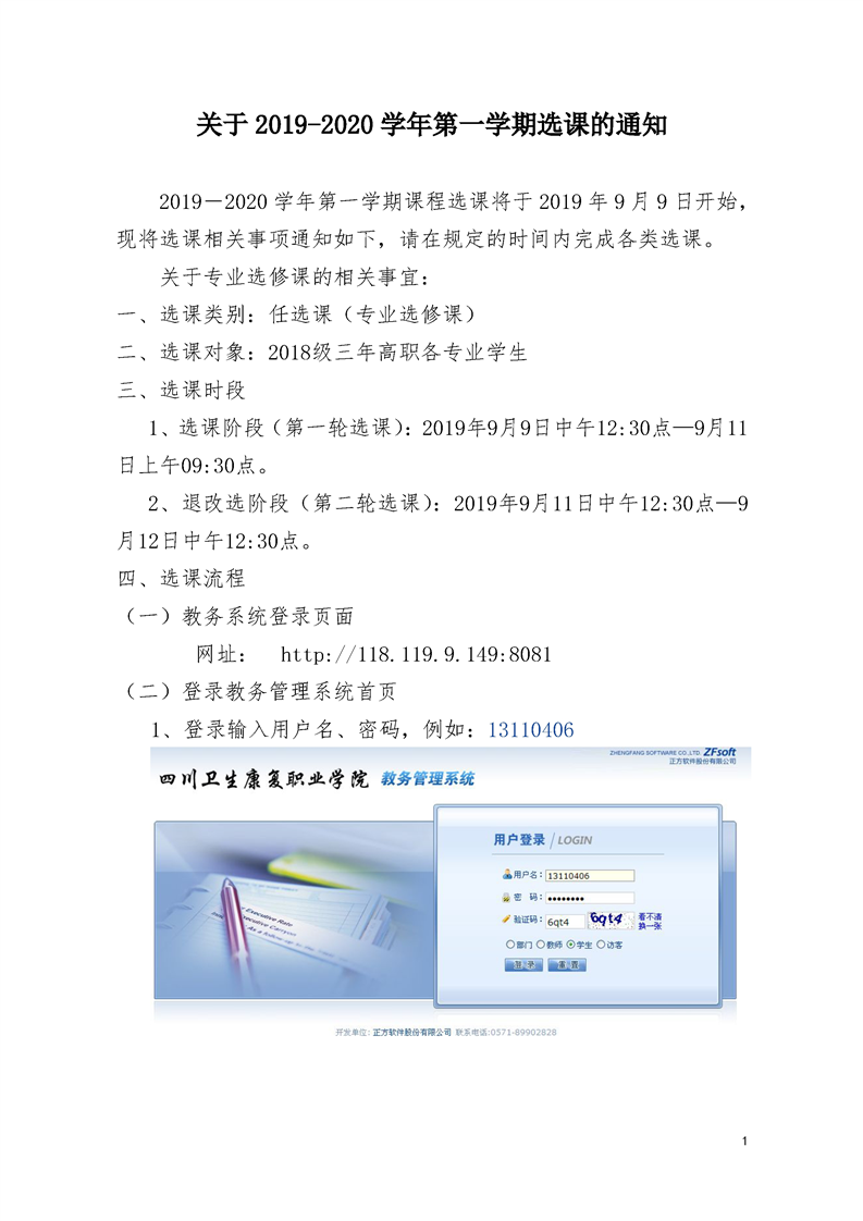 关于2019-2020学年第一学期选课的通知