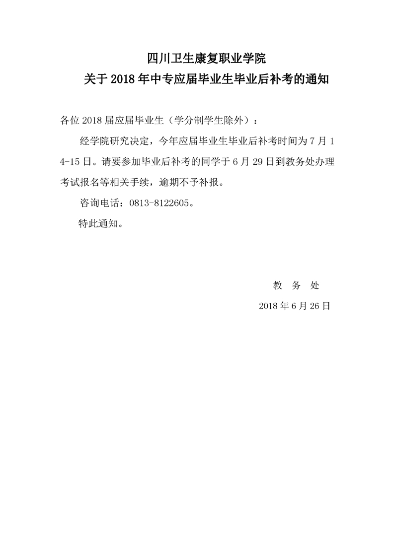 taptap点点体育 关于2018年中专应届毕业生毕业后补考的通知