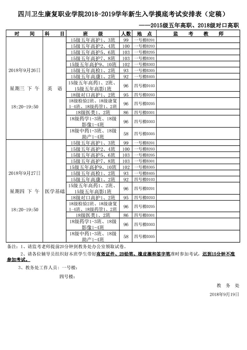 taptap点点体育2018-2019学年新生入学摸底考试安排表