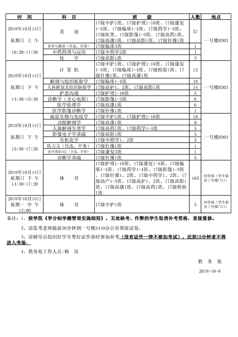 taptap点点体育2017-2018学年第二学期学期补考安排表(定稿)