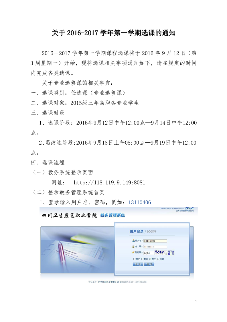 关于2016-2017学年第一学期选课的通知