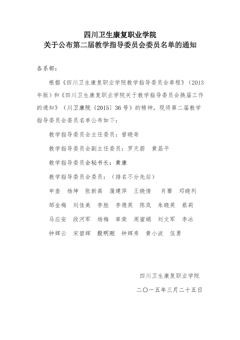 taptap点点体育 关于公布第二届教学指导委员会委员名单的通知