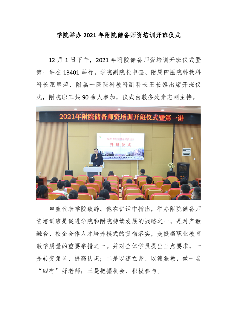学院举办2021年附院储备师资培训开班仪式