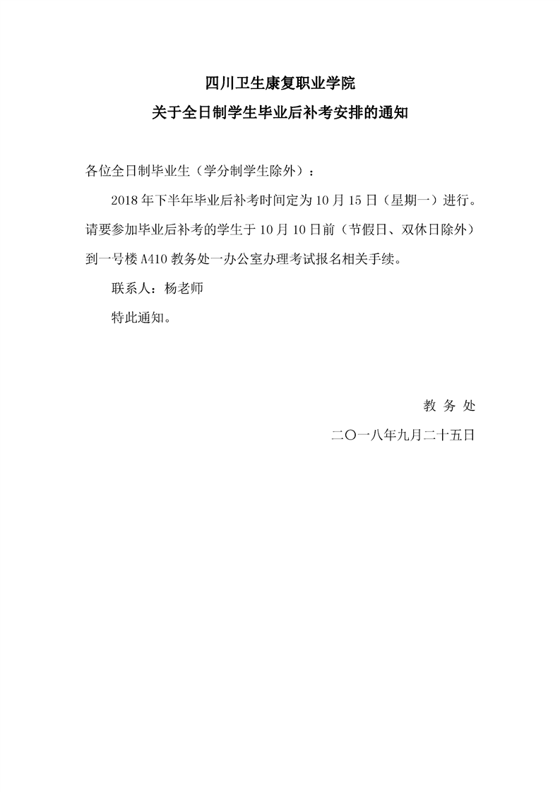 关于全日制学生毕业后补考安排的通知