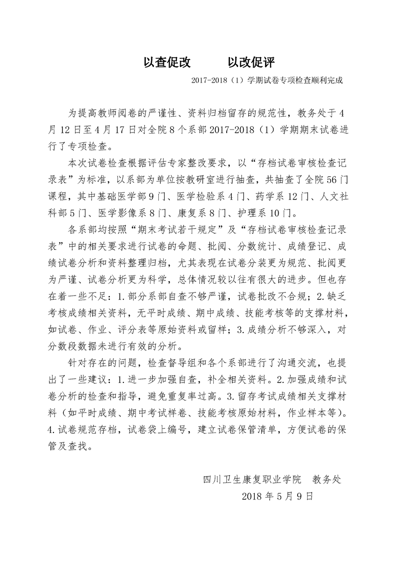 以查促改 以改促评
