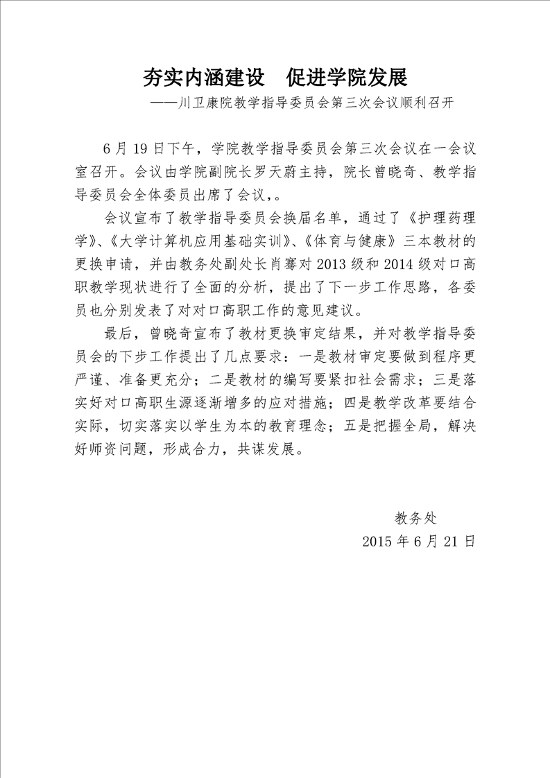 夯实内涵建设 促进学院发展