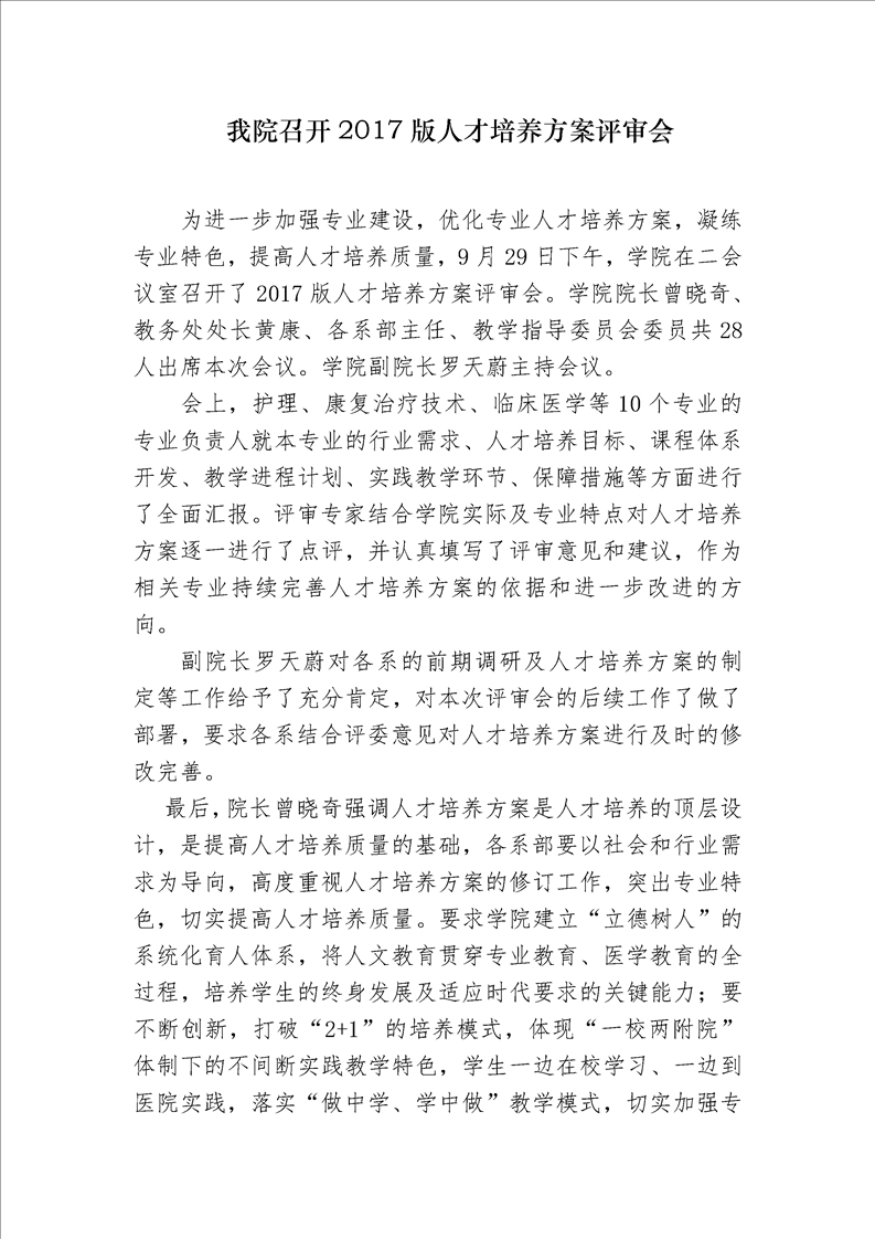 我院召开2017版人才培养方案评审会
