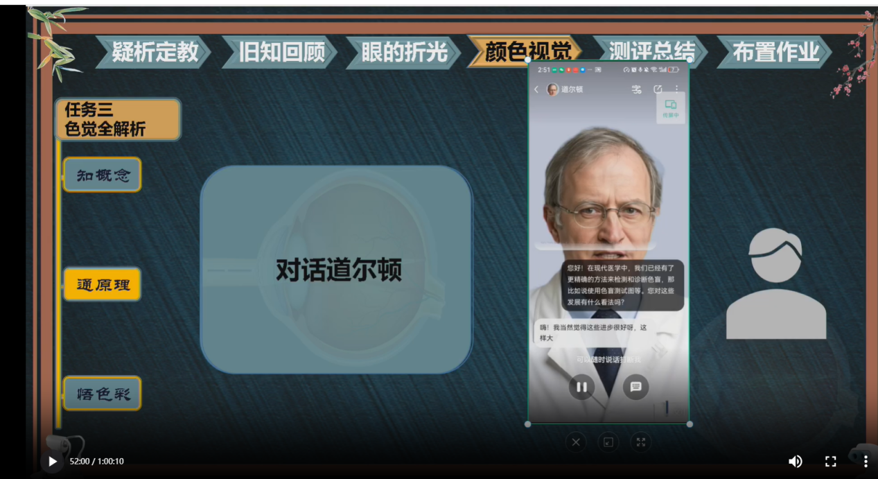 研讨环节亮点纷呈。学生代表反馈"虚拟实验让抽象的折光原理变得直观,小组协作通过思维导图让我们再次加深了对重难点的把握"。随后,教师代表围绕"如何平衡虚拟实验与实操训练课时比例"展开深度交流,形成"课前虚拟认知→课中实训练习→课后AI巩固"的教学共识。