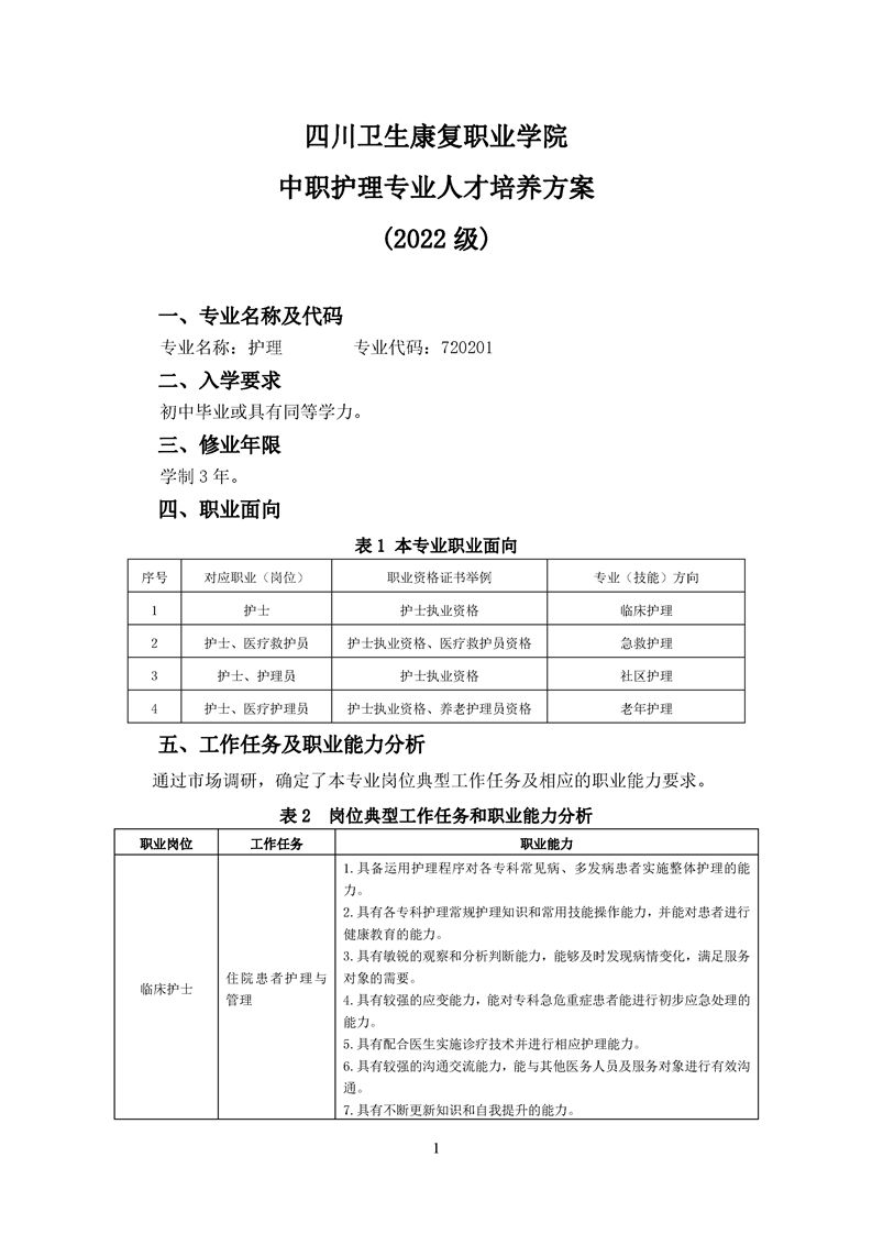 taptap点点体育中职护理专业人才培养方案(2022级)