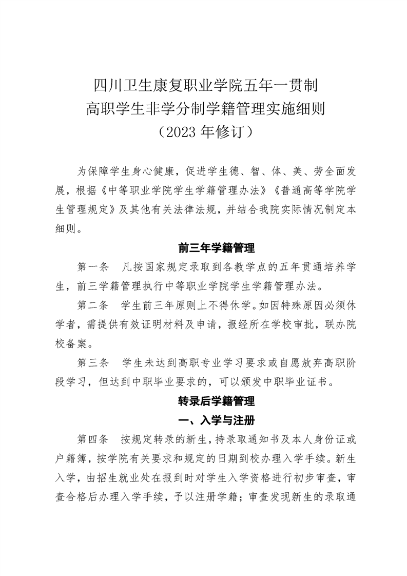 taptap点点体育五年一贯制 高职学生非学分制学籍管理实施细则 (2023 年修订)