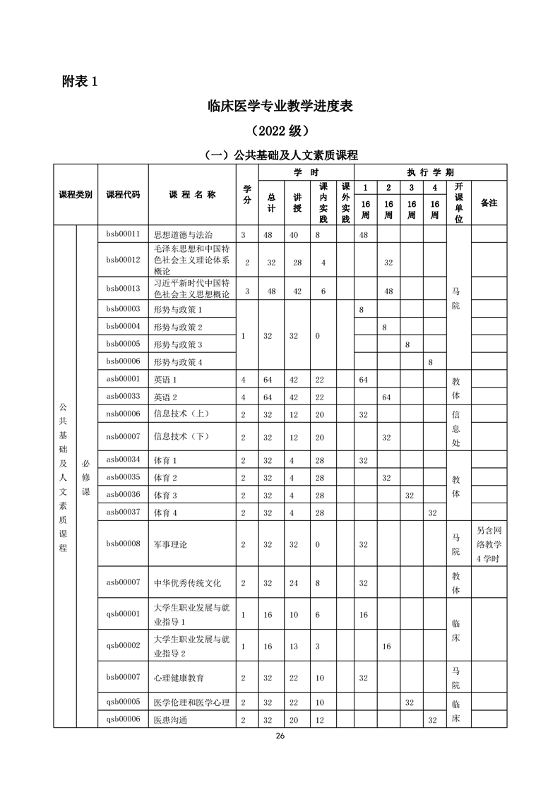 临床医学专业人才培养方案(2022级)