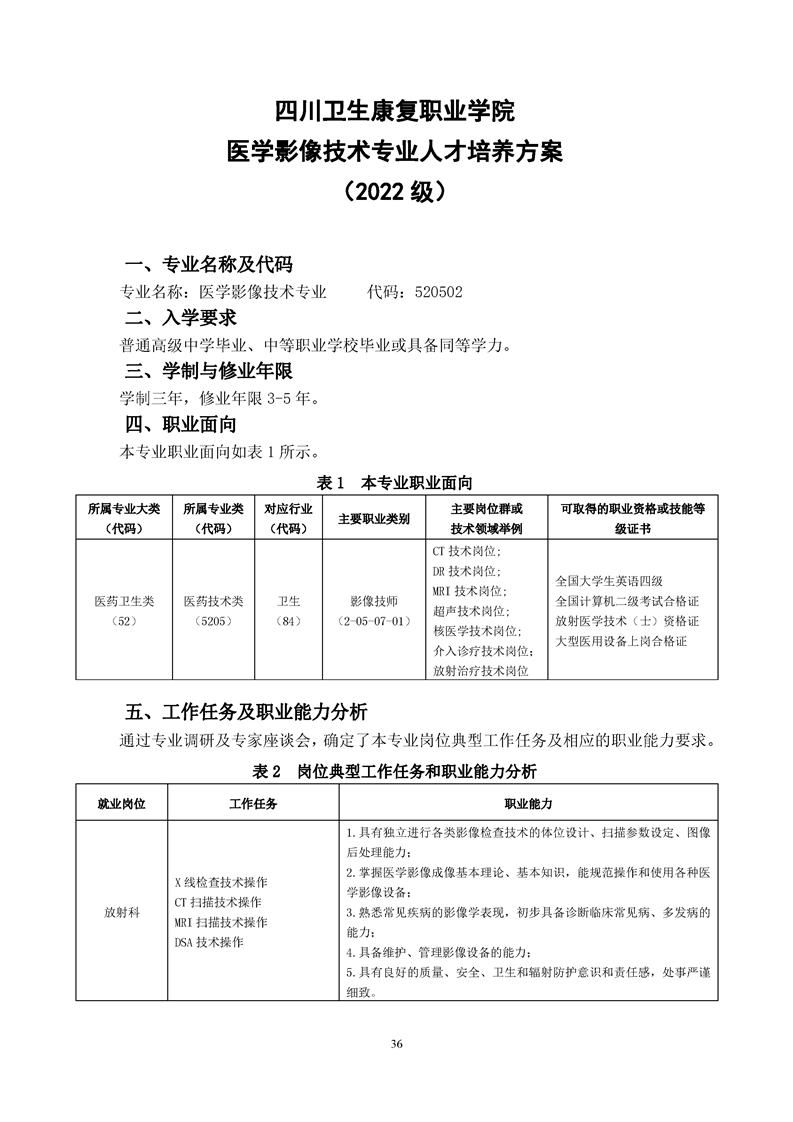 医学影像技术专业人才培养方案(2022级)