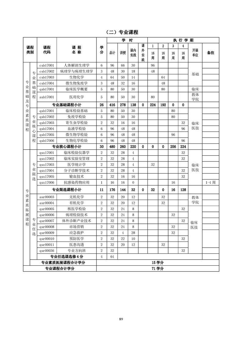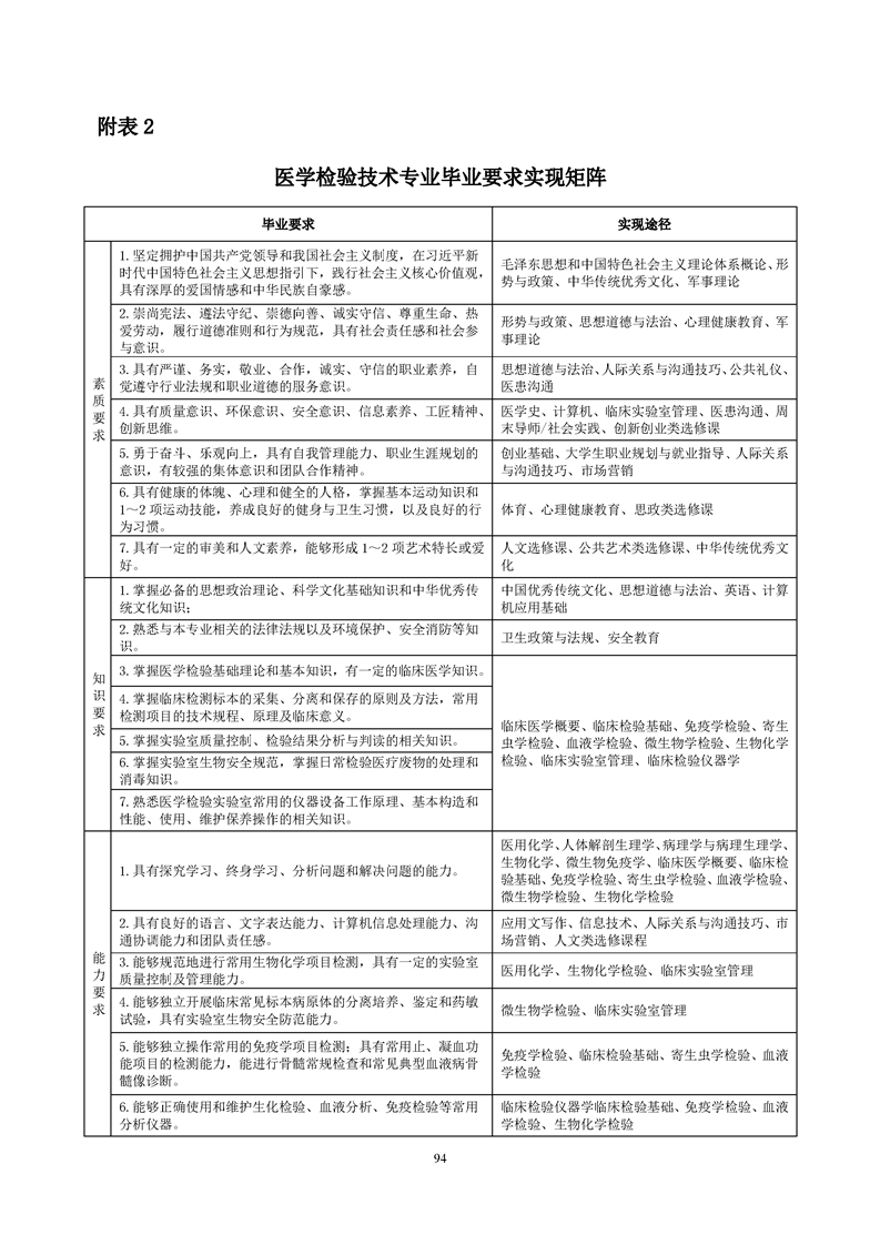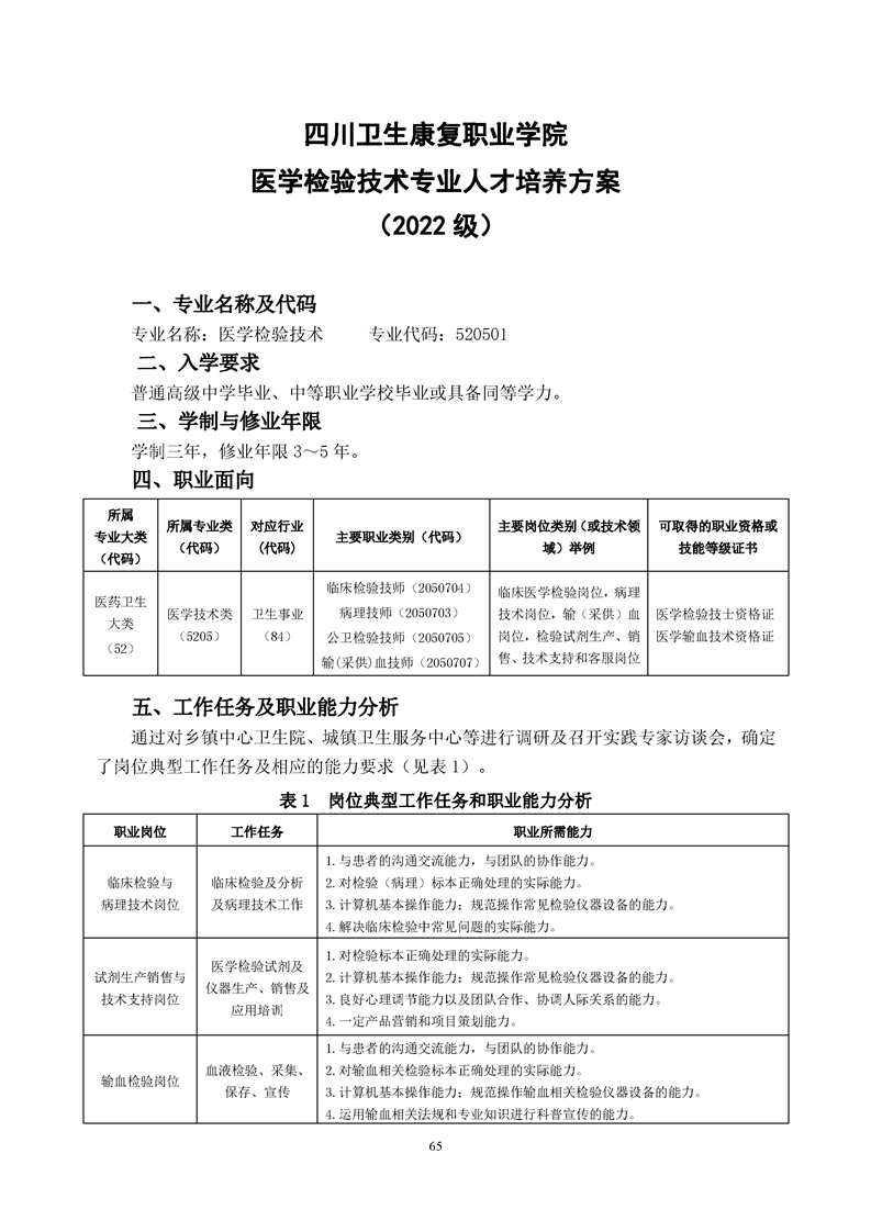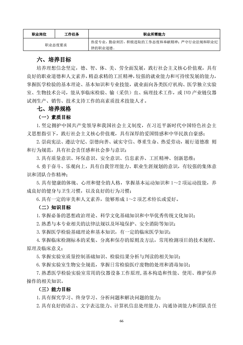 医学检验技术专业人才培养方案(2022级)