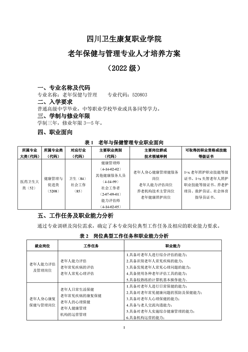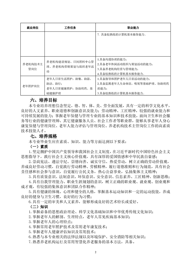 老年保健与管理专业人才培养方案(2022级)