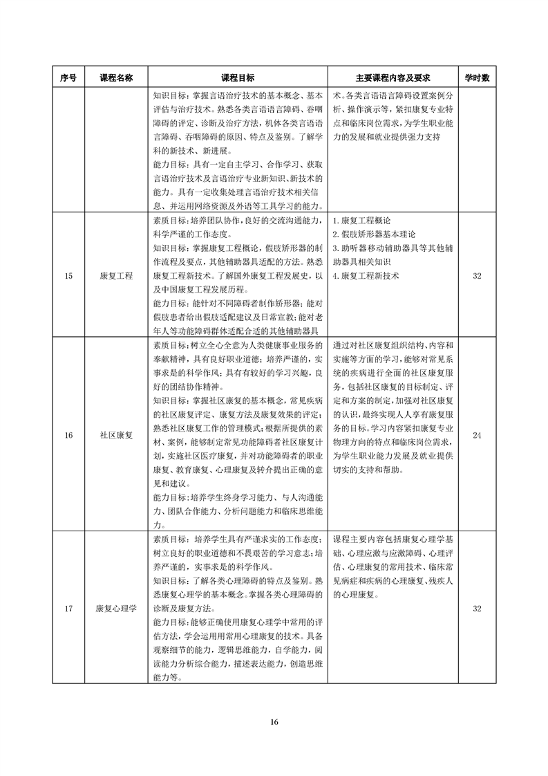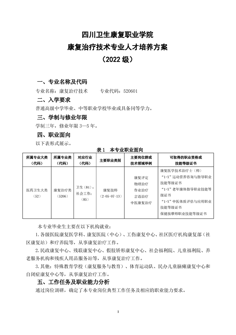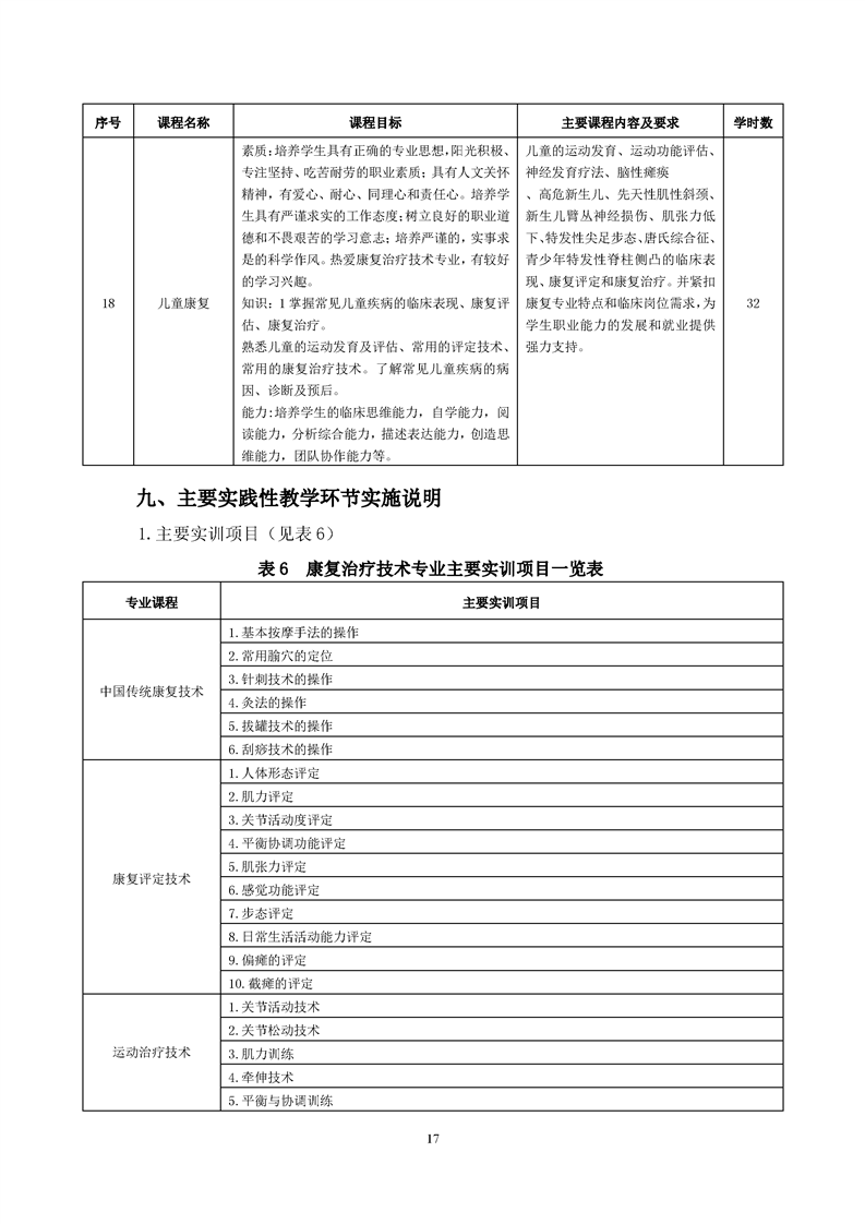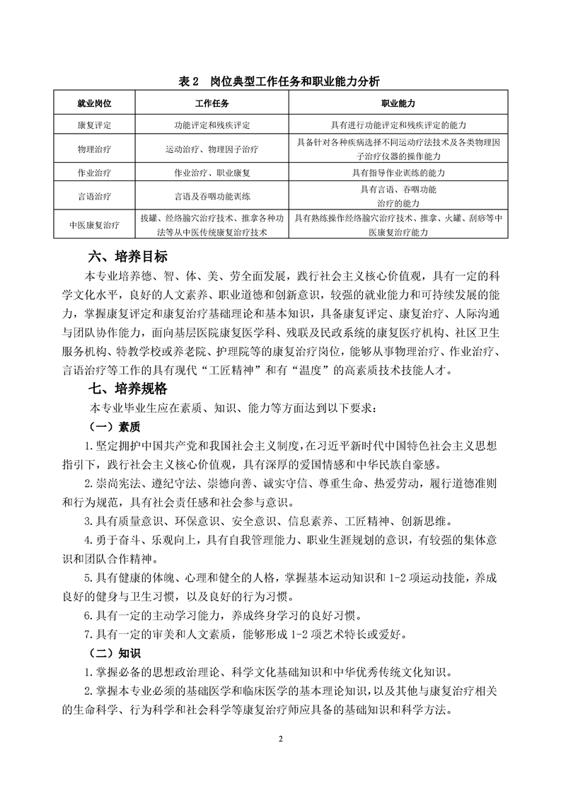 康复治疗技术专业人才培养方案(2022级)