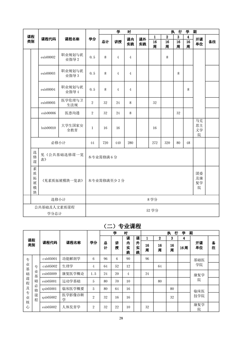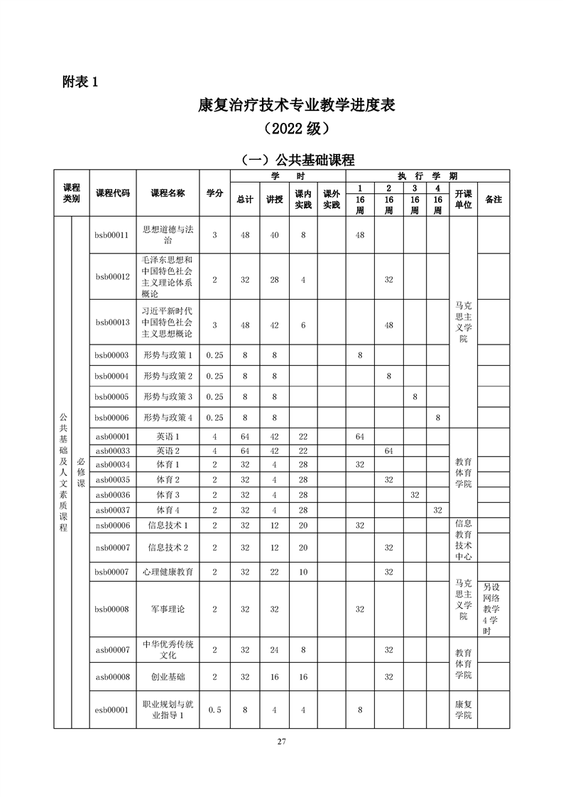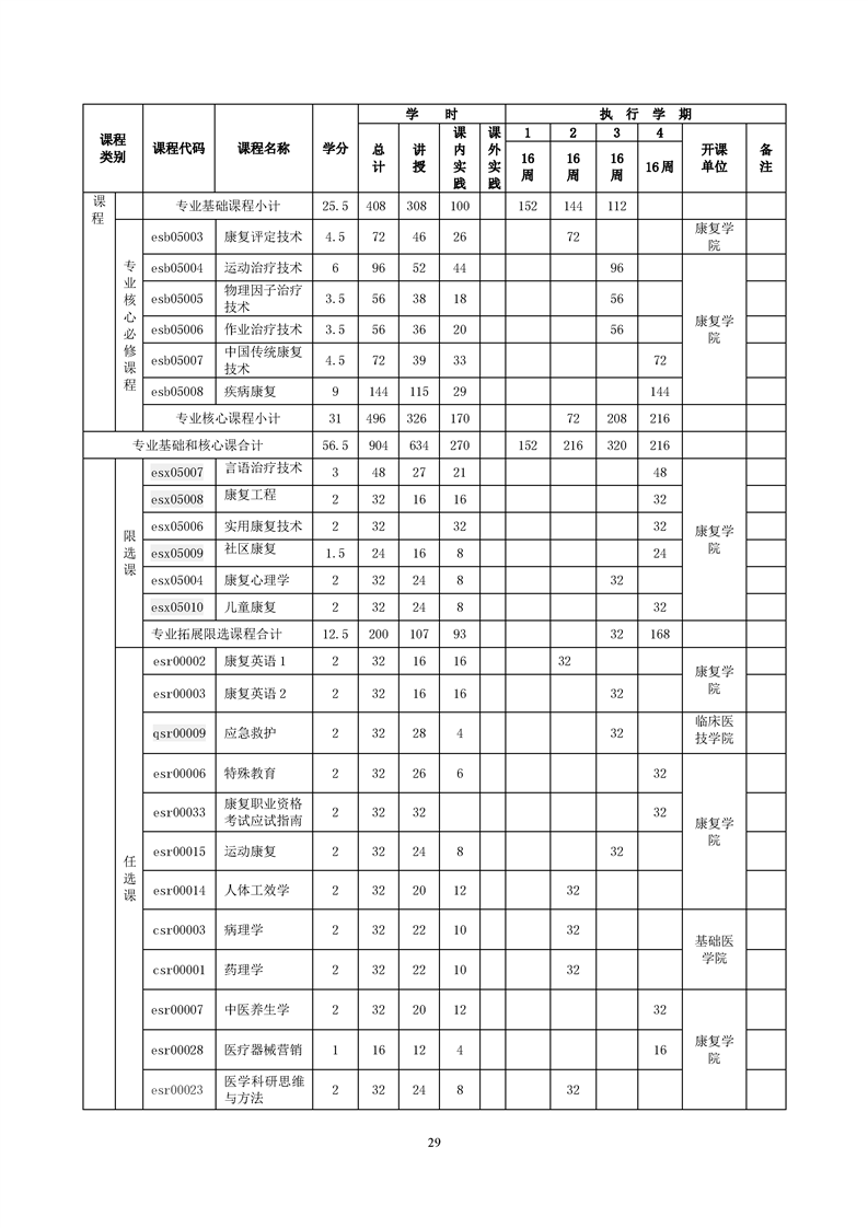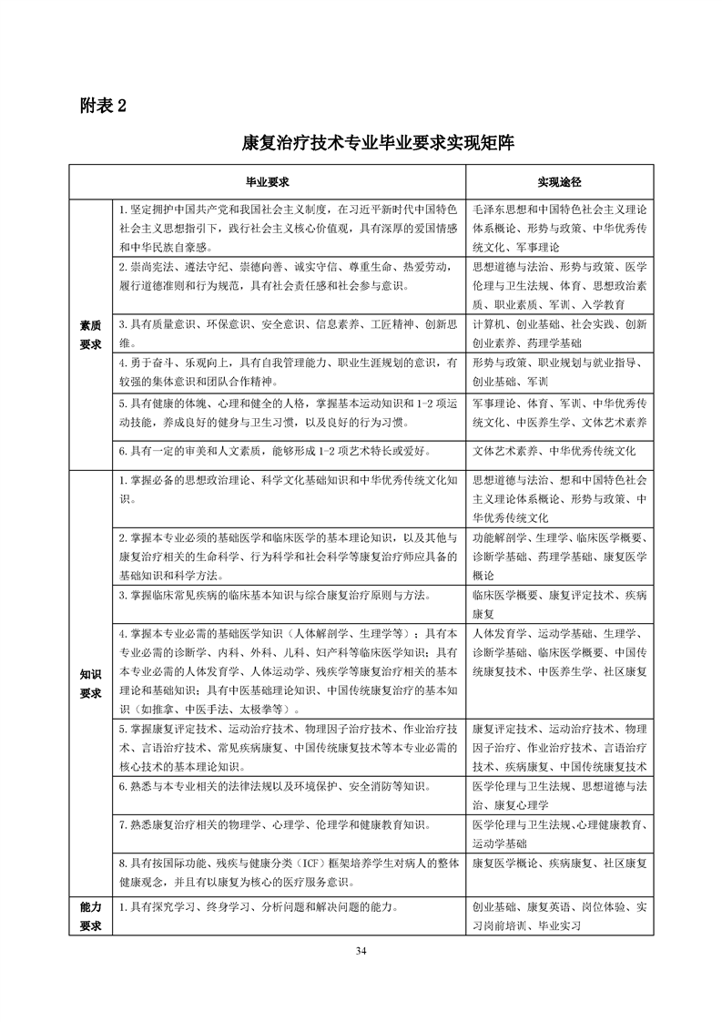 康复治疗技术专业人才培养方案(2022级)