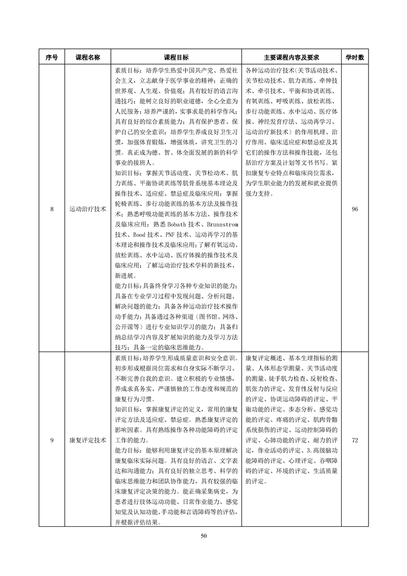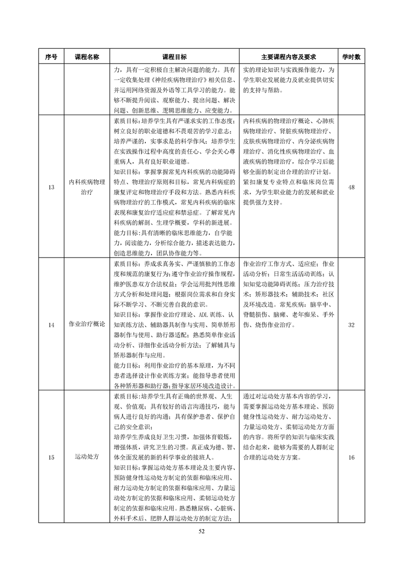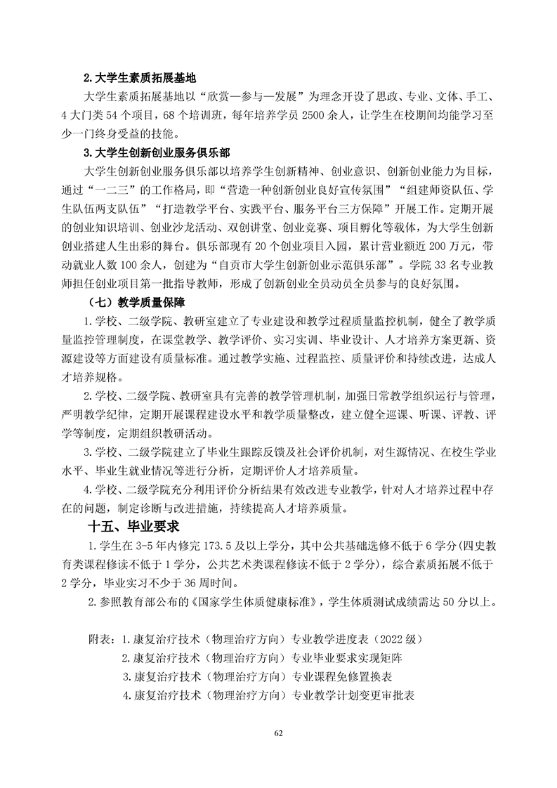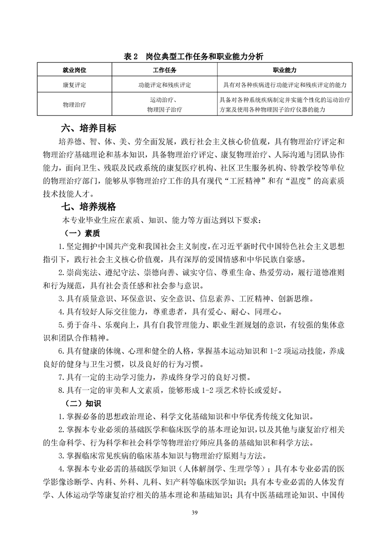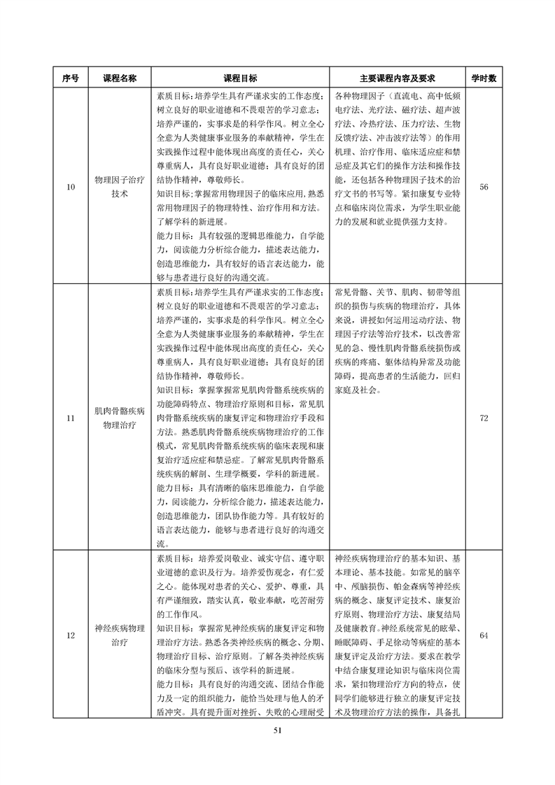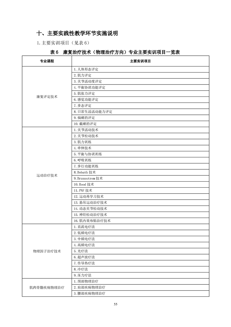 康复治疗技术(物理治疗方向)专业人才培养方案(2022级)