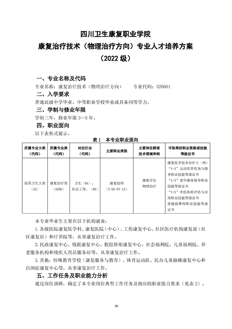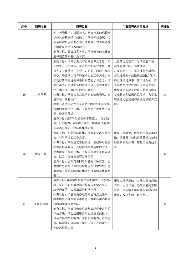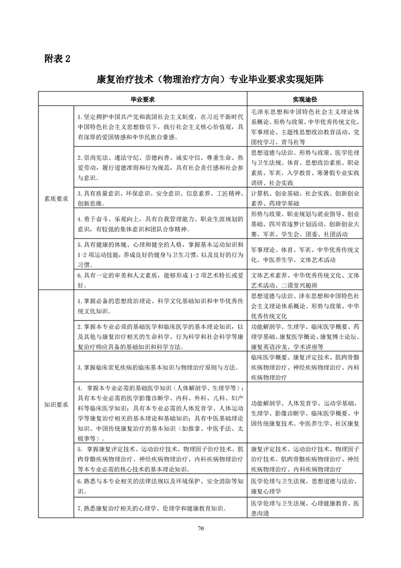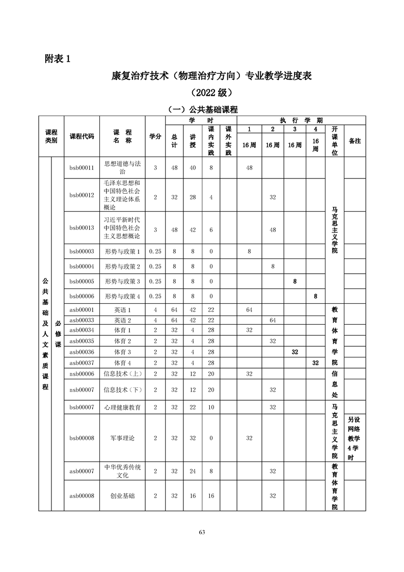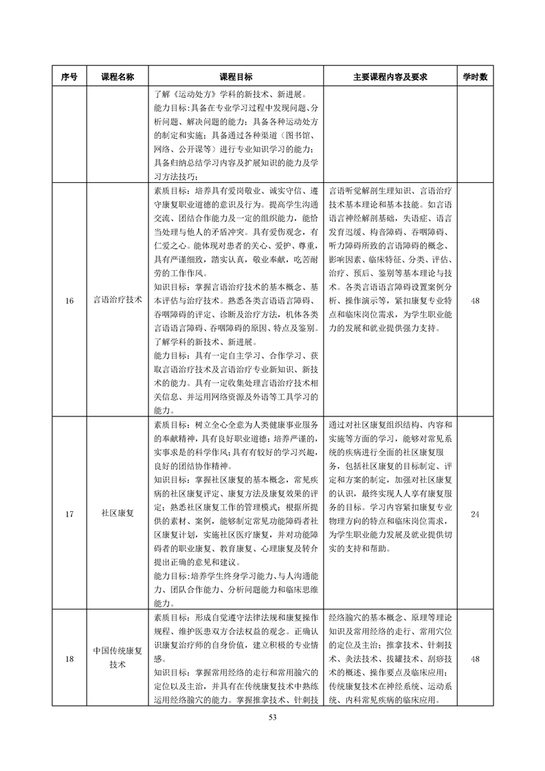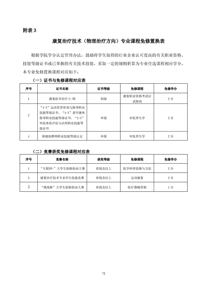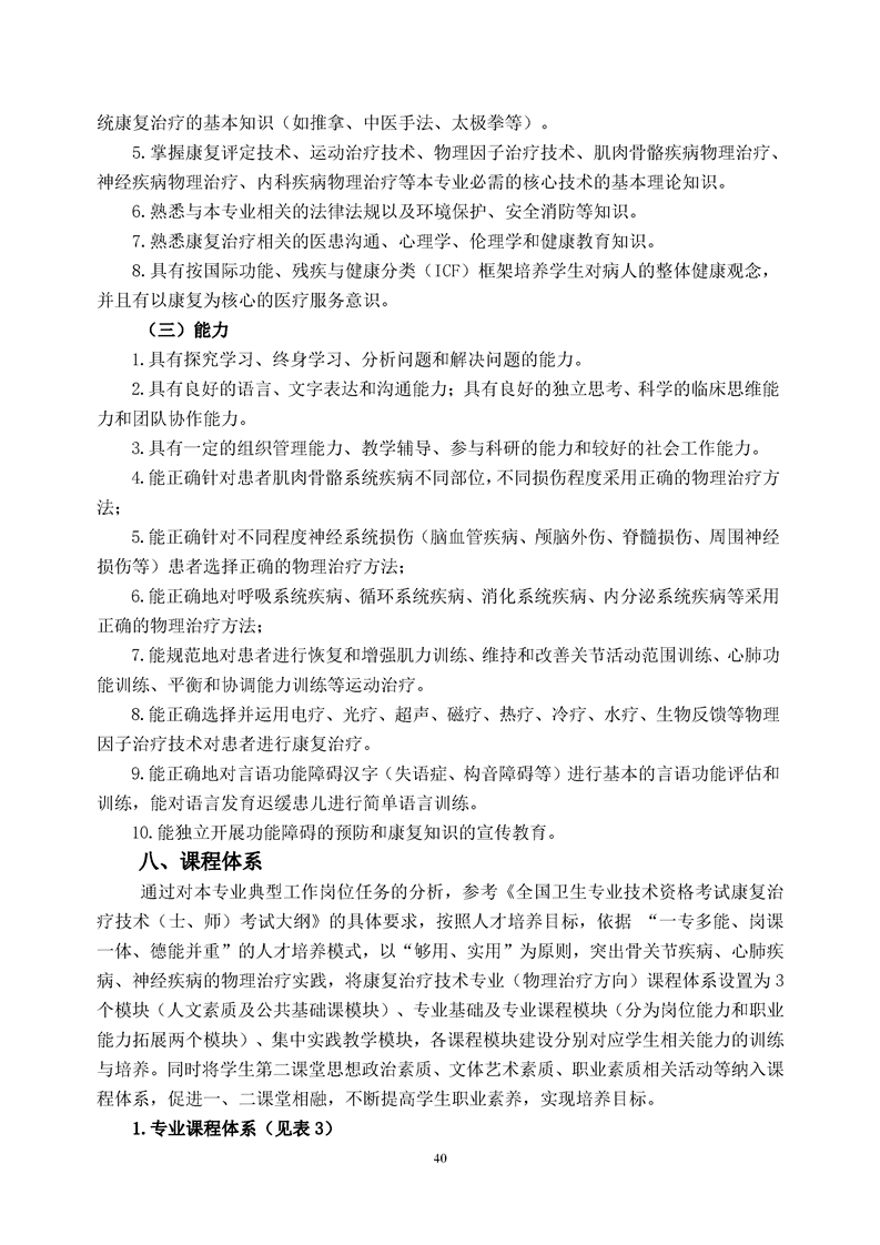 康复治疗技术(物理治疗方向)专业人才培养方案(2022级)
