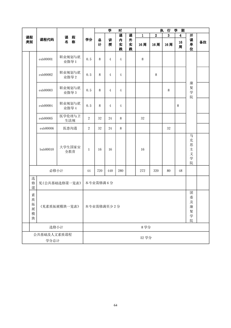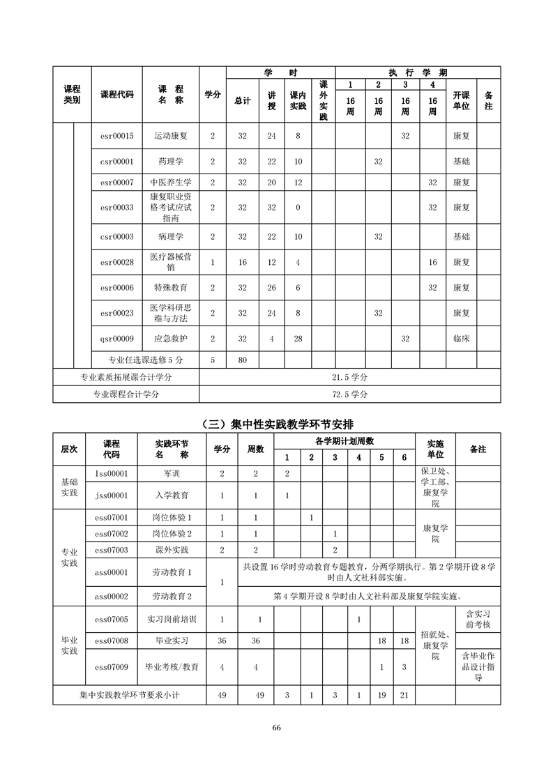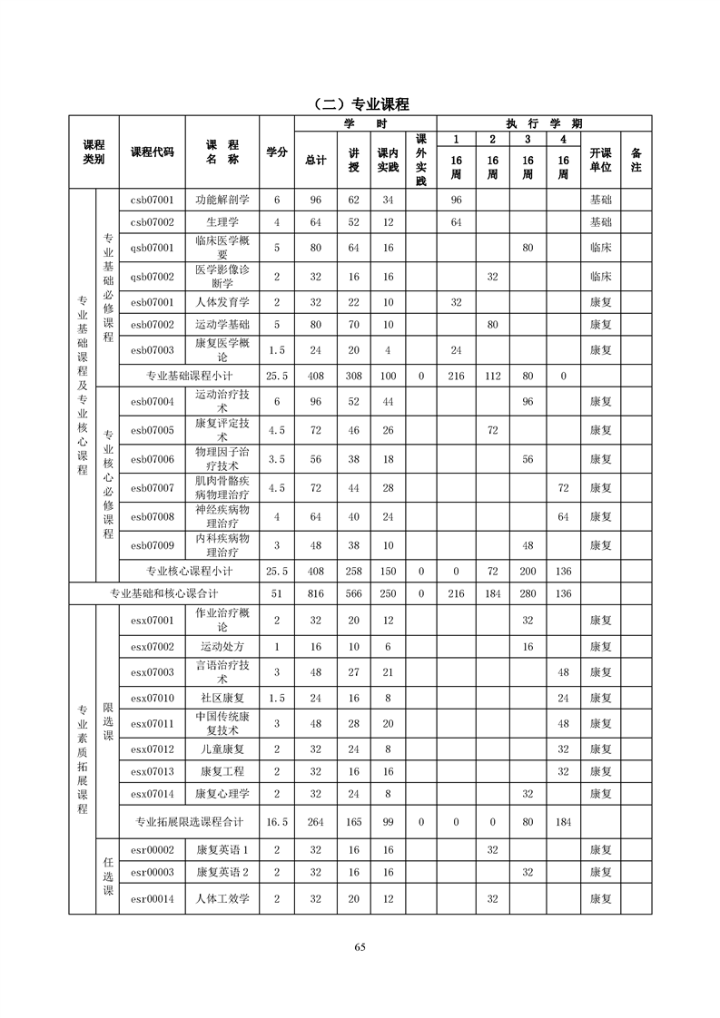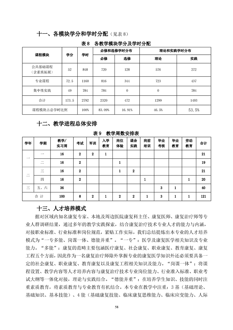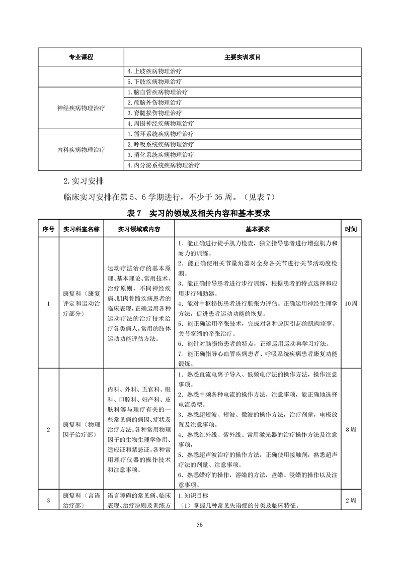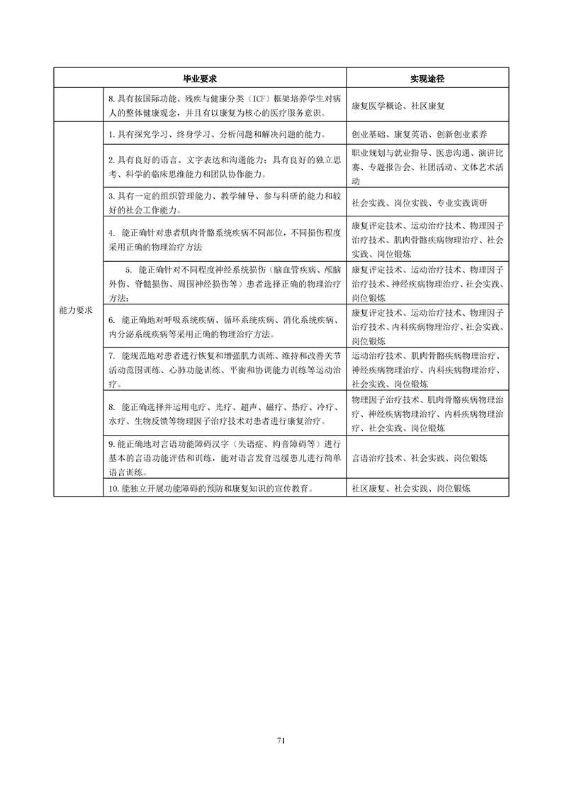 康复治疗技术(物理治疗方向)专业人才培养方案(2022级)