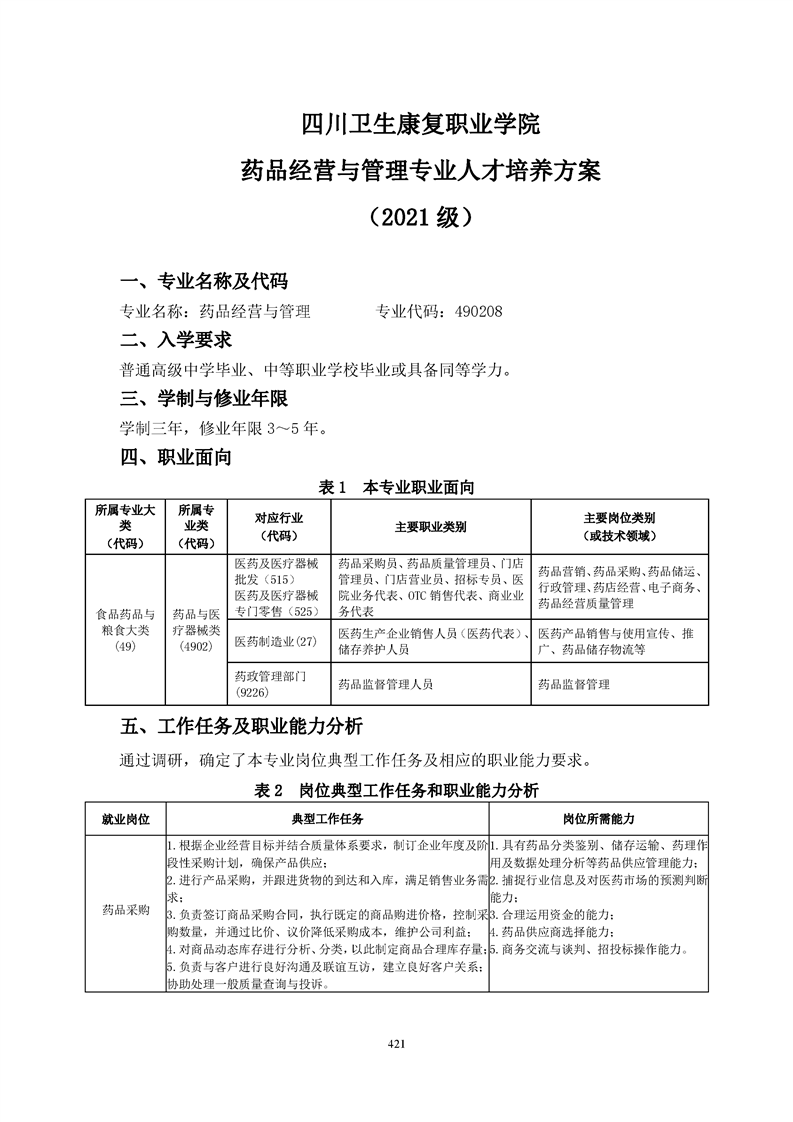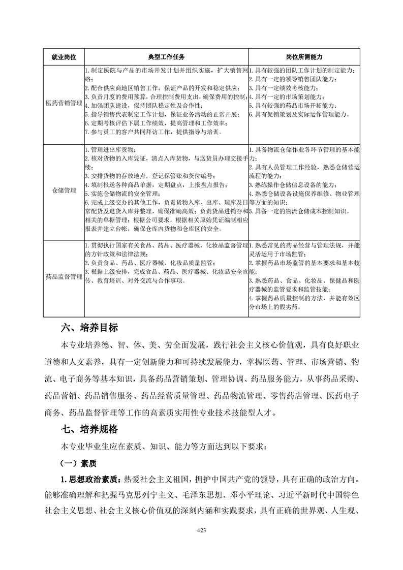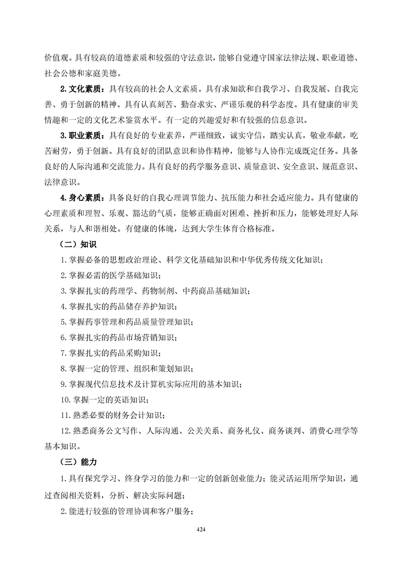 taptap点点体育药品经营与管理专业人才培养方案(2021级)