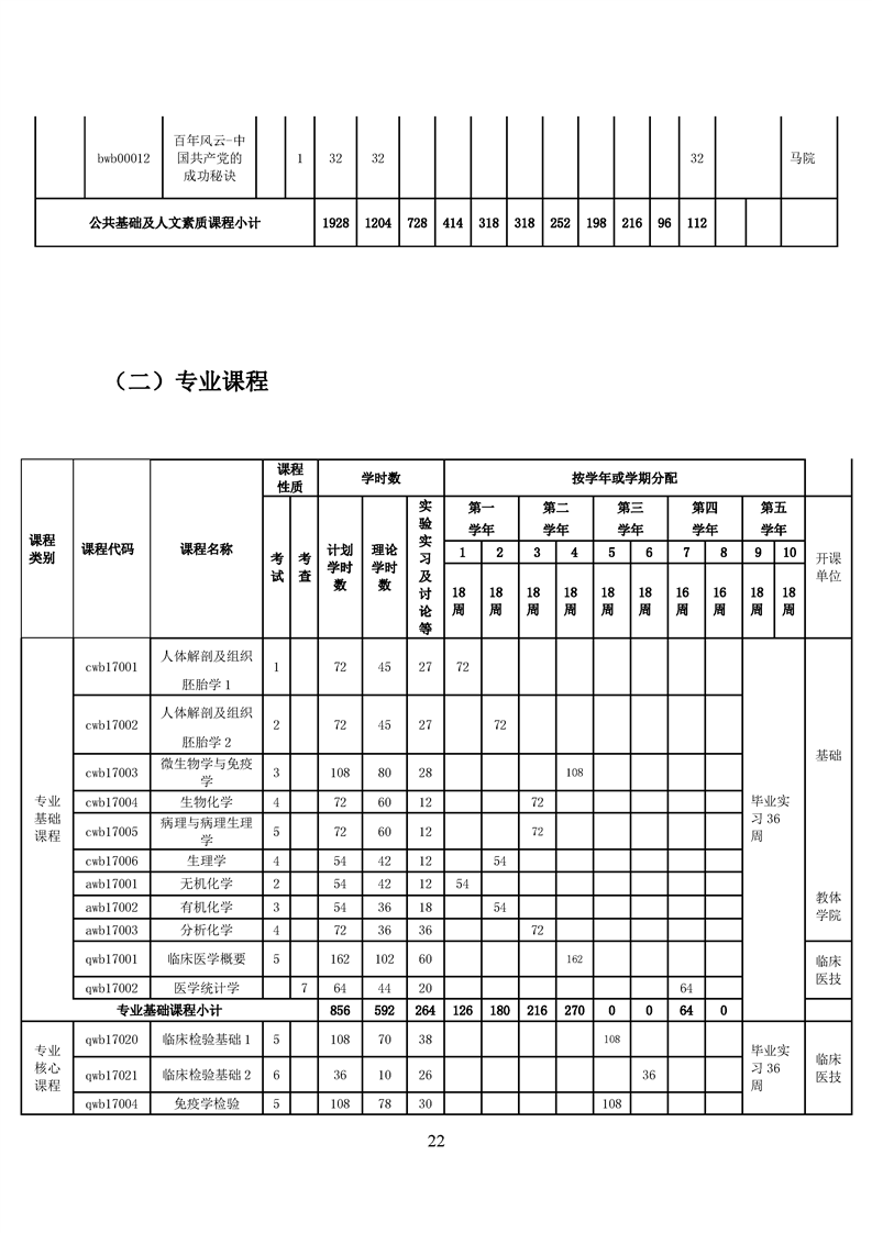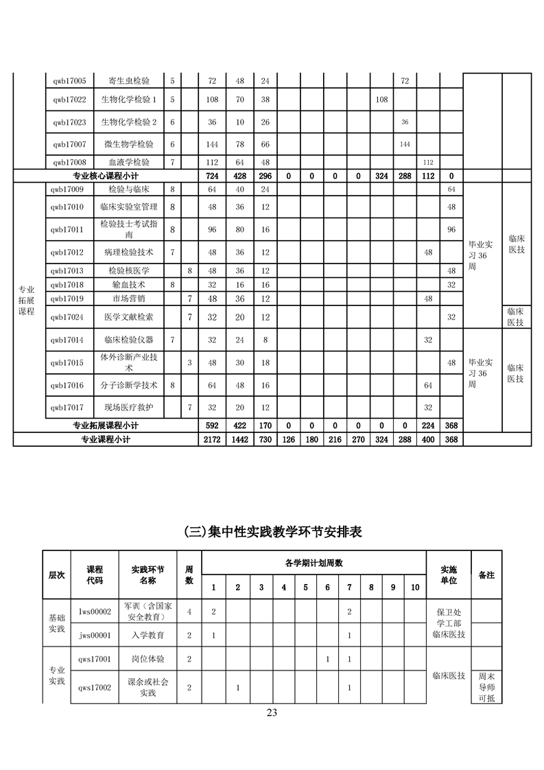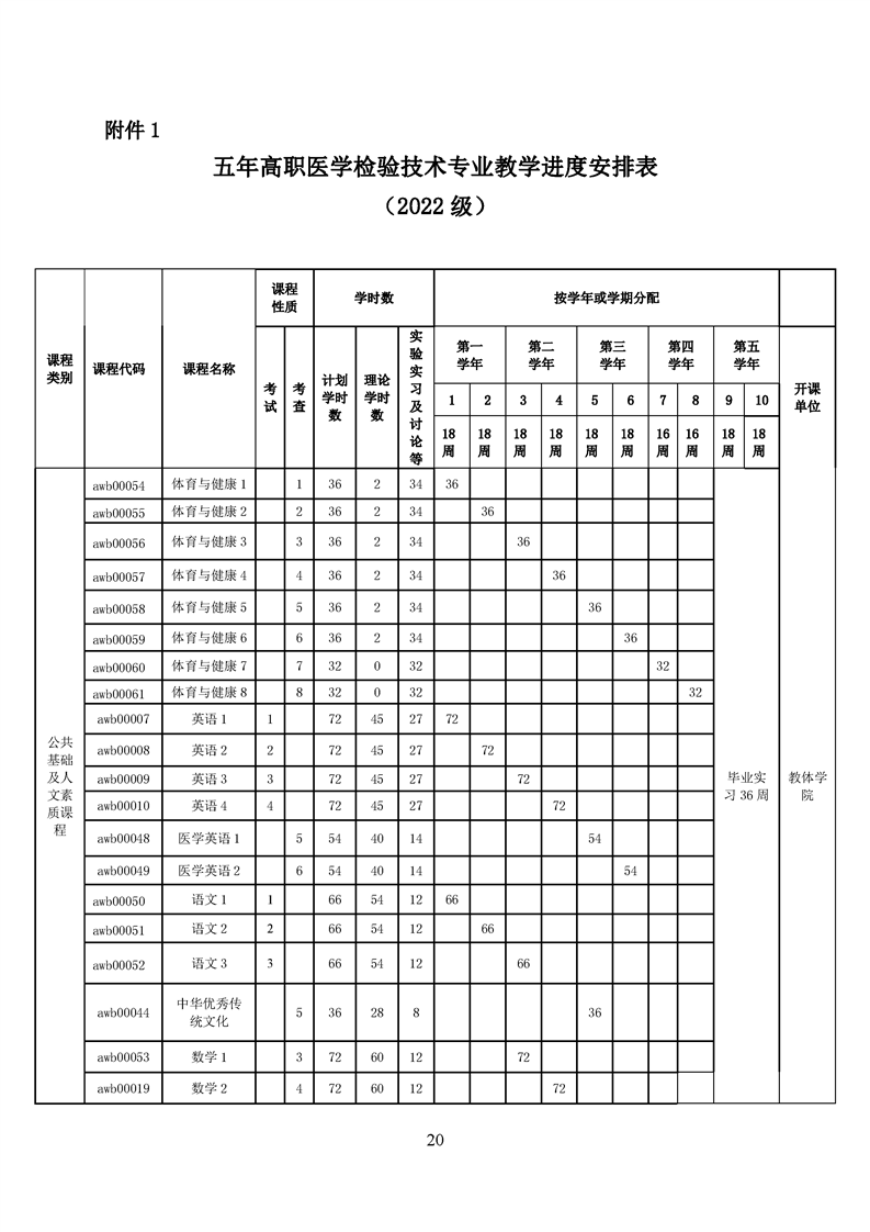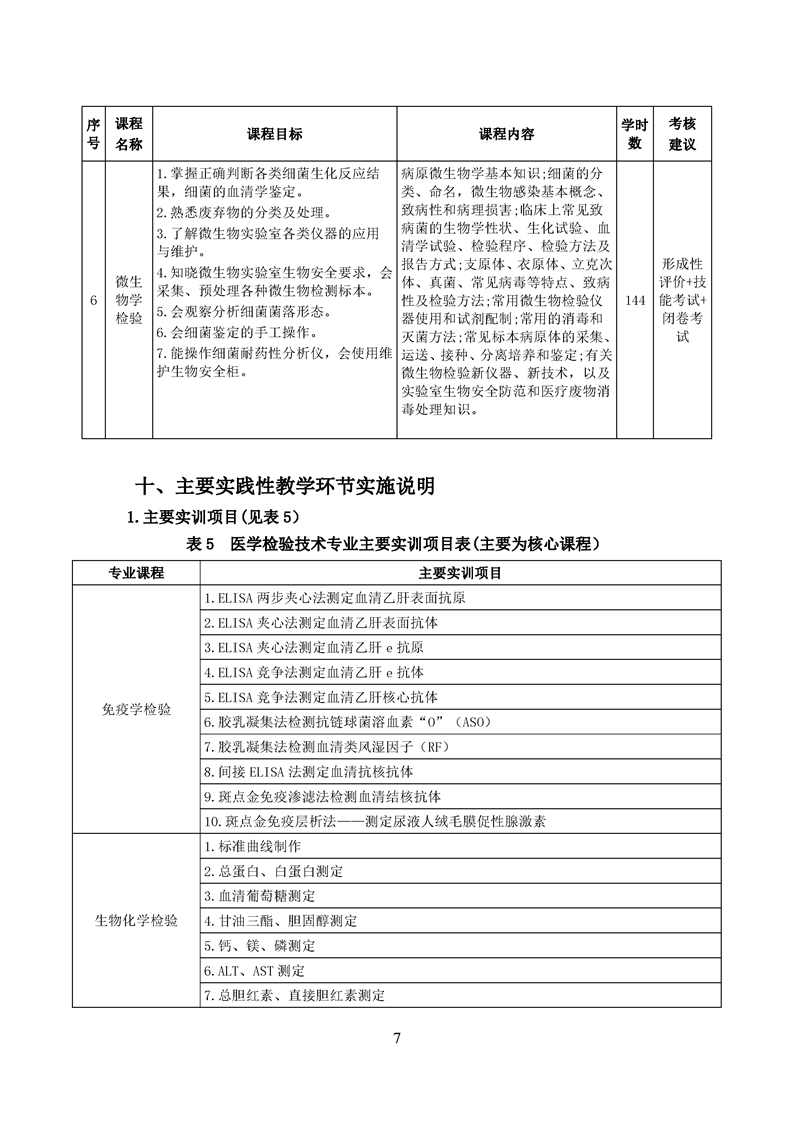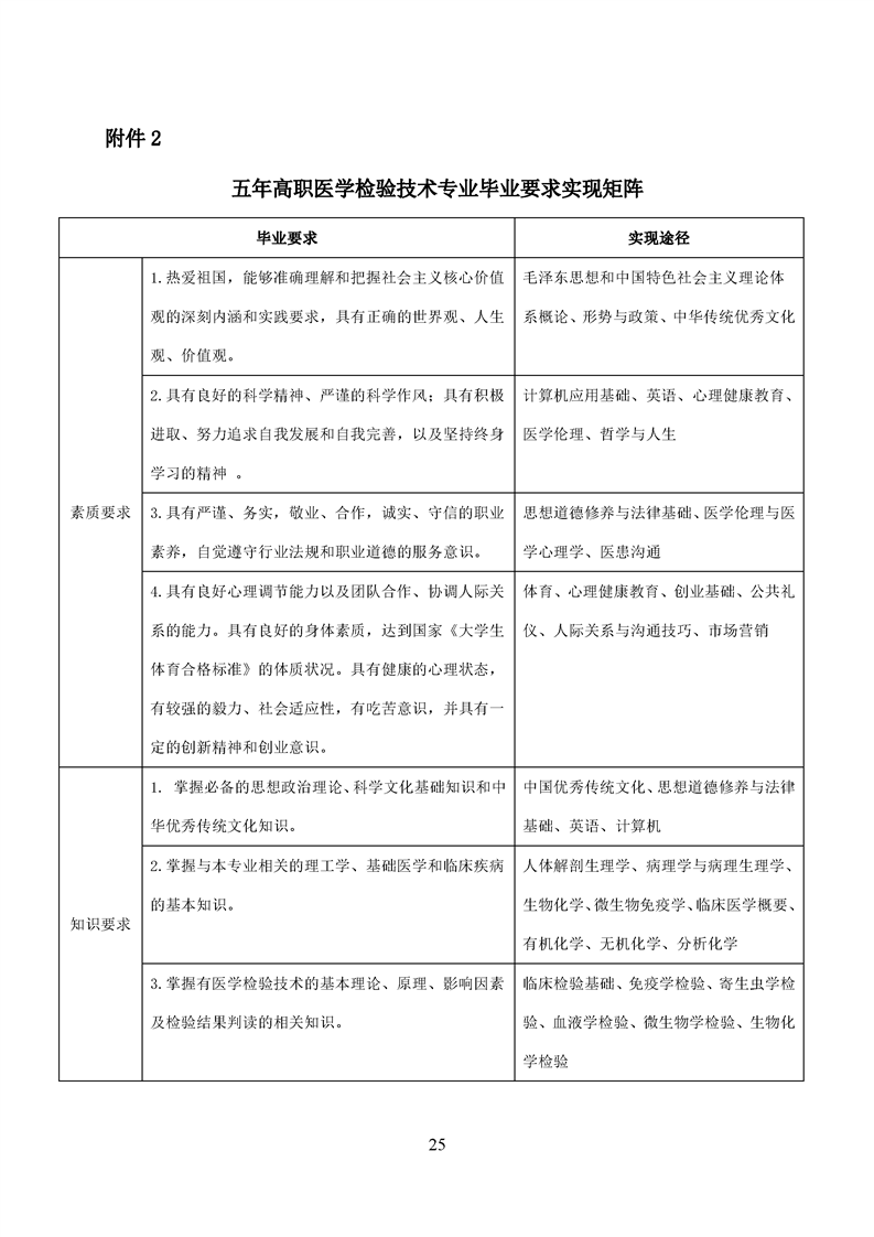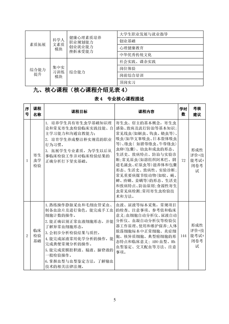 五年高职医学检验技术专业人才培养方案(2022级)