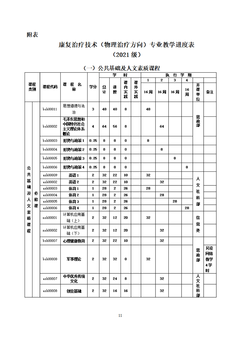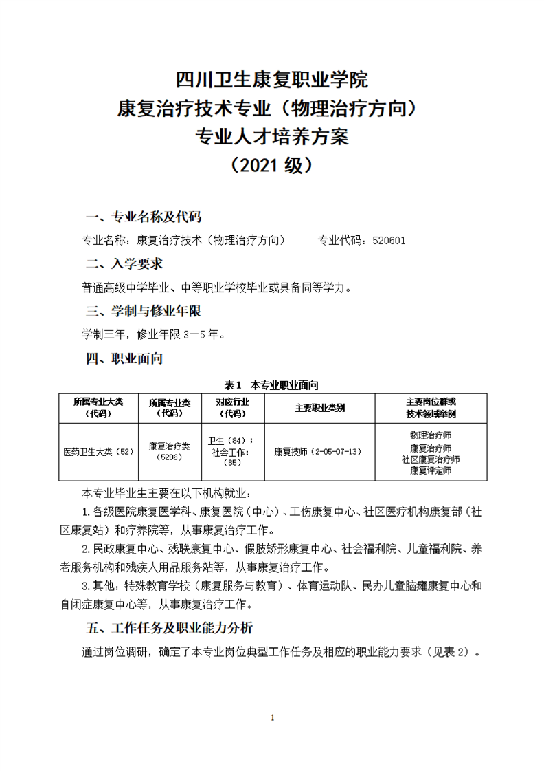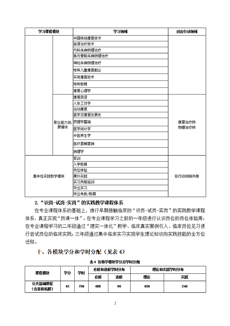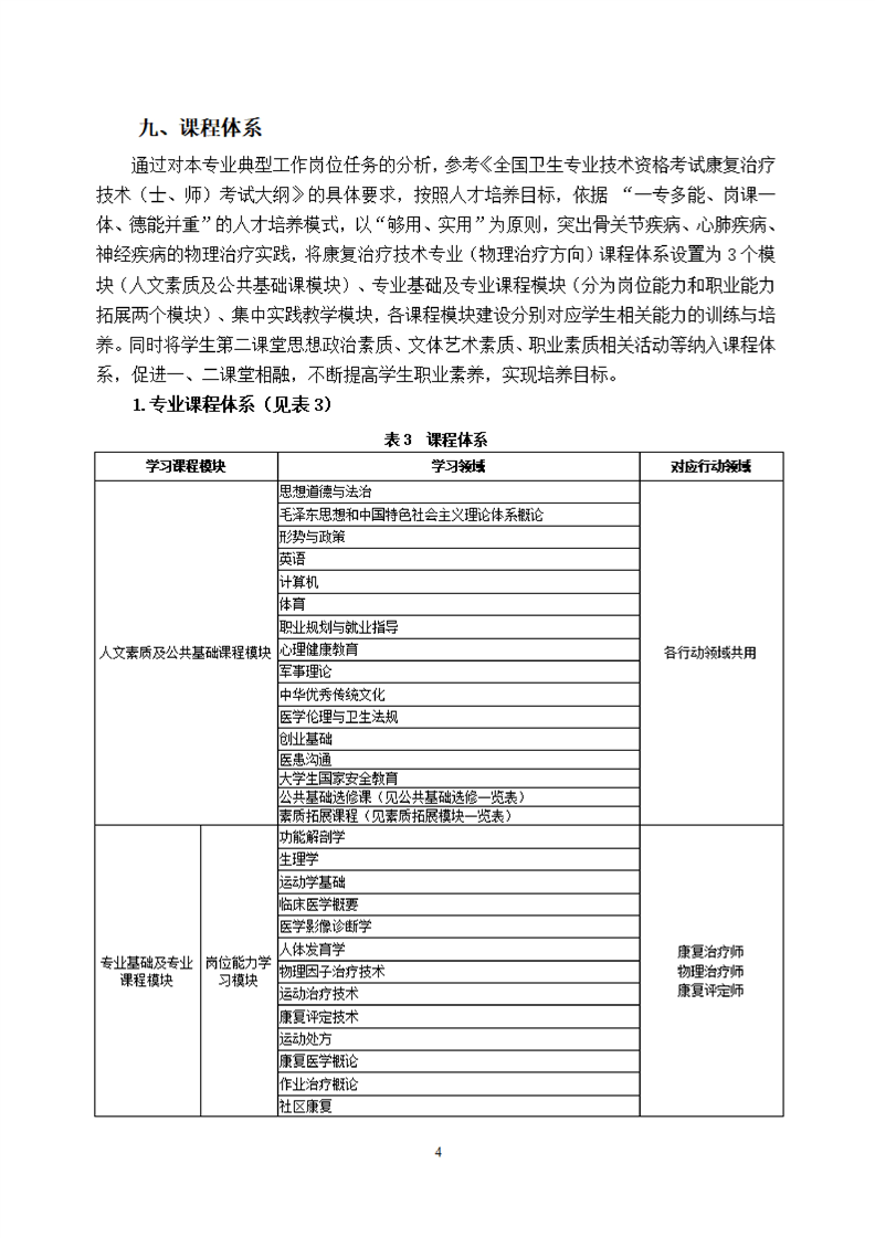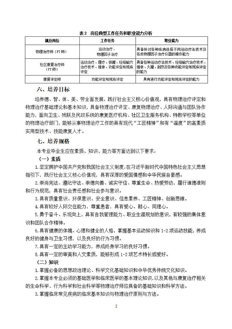 taptap点点体育康复治疗技术专业(物理治疗方向)专业人才培养方案(2021级)