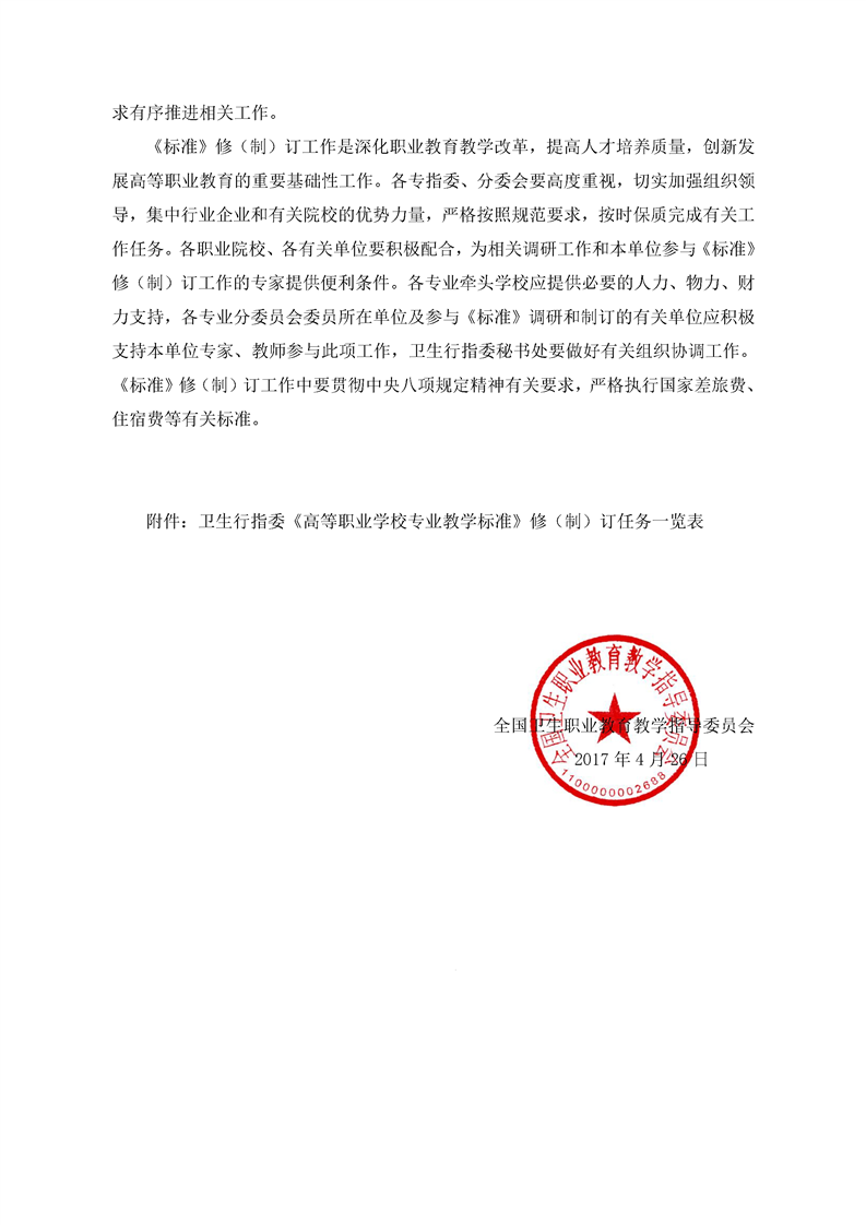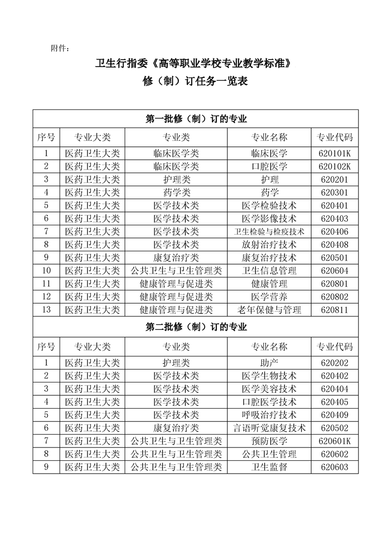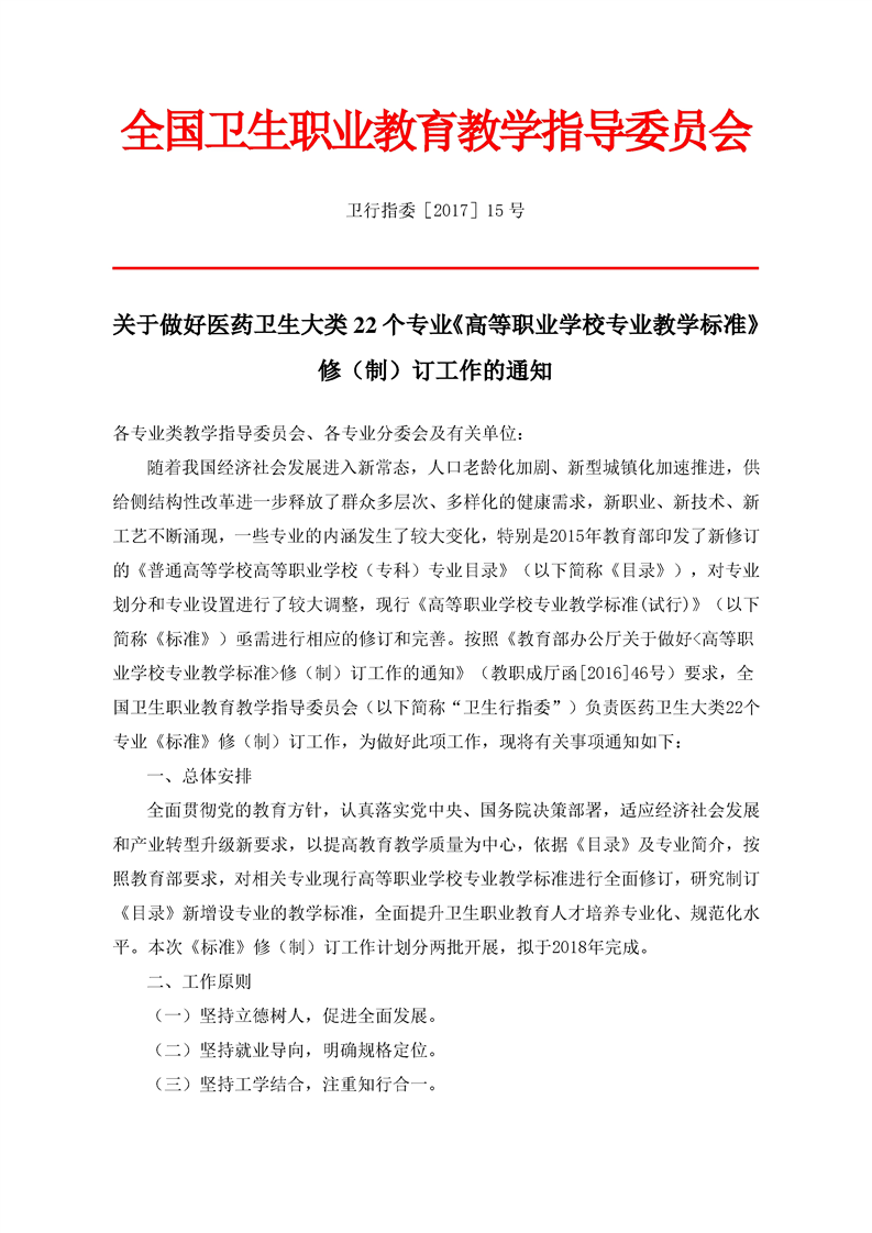 关于做好医药卫生大类22个专业《高等职业学校专业教学标准》修(制)订工作的通知