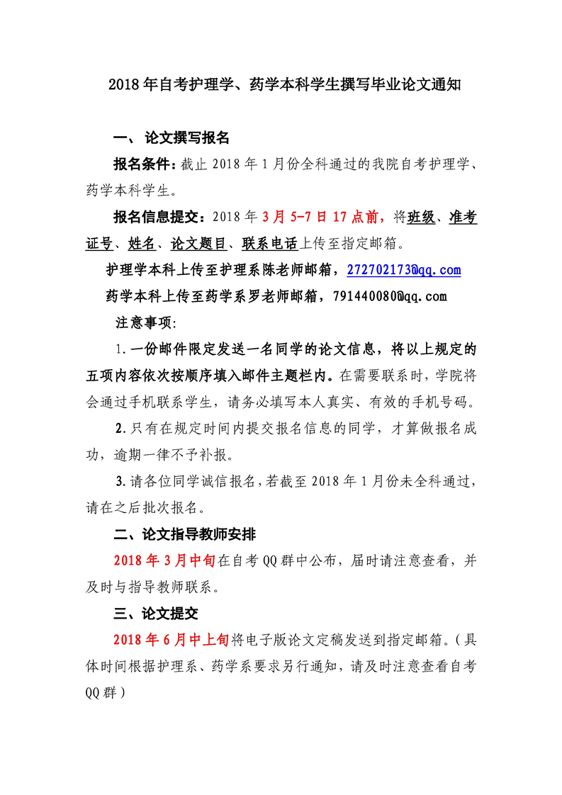 2018年护理学、药学本科撰写毕业论文通知
