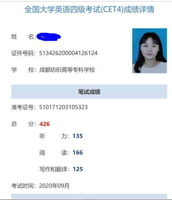 例:非学历证书(大学英语四级) |