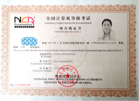(一) 全国计算机等级考试证书(NCRE)