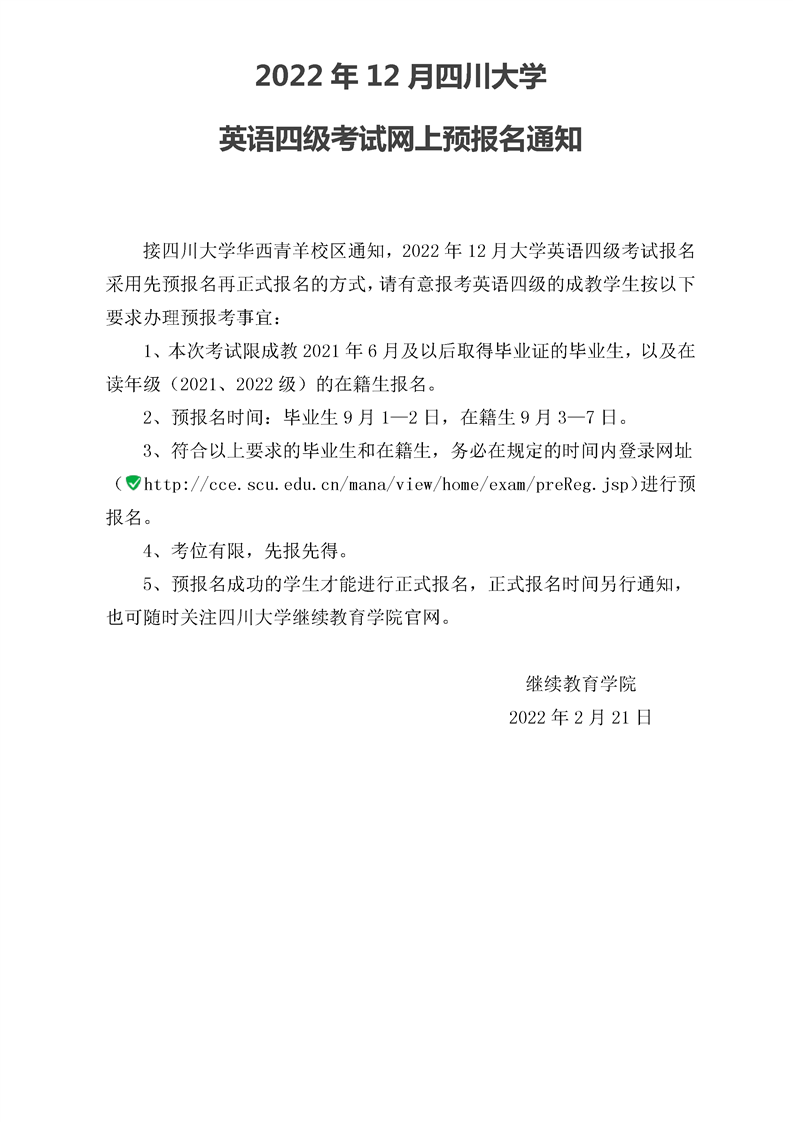 2022年12月四川大学英语四级考试网上预报名通知