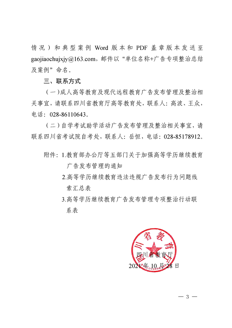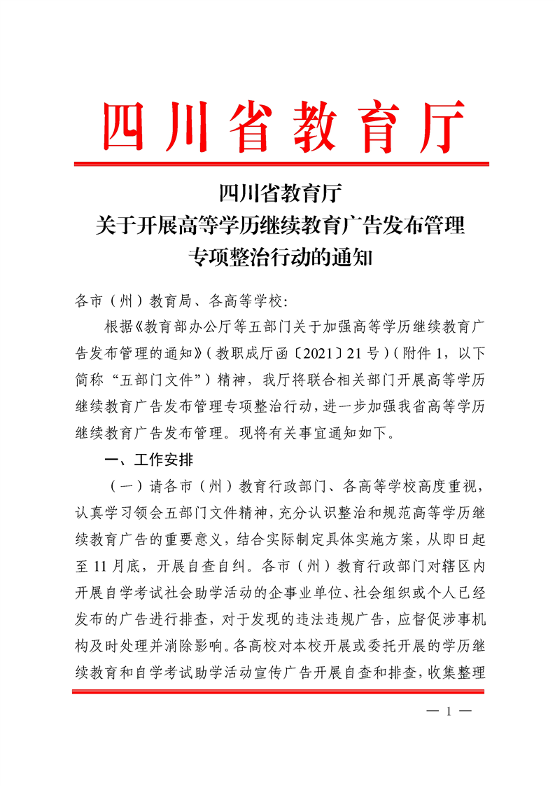四川省教育厅关于开展高等学历继续教育广告发布管理专项整治行动的通知