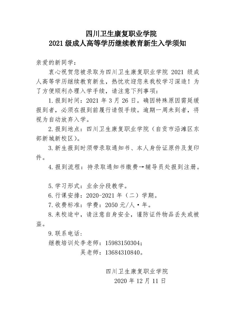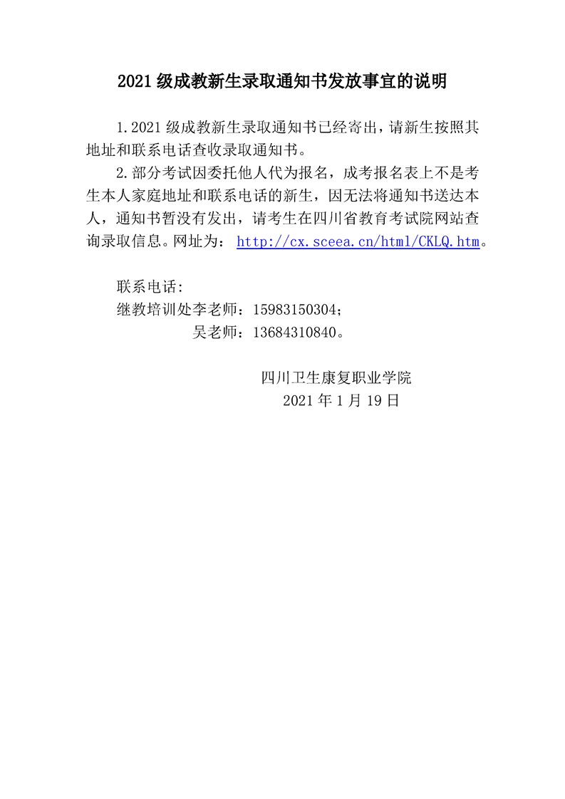 2021级成教新生录取通知书发放事宜的说明