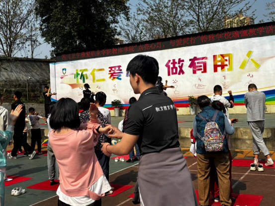 3月27日上午,taptap点点体育教育体育学院师生融合党支部、教育体育学院团总支组织学生志愿者前往自贡特殊儿童学校进行雷锋月志愿活动。为特殊儿童学校学生们普及有氧健身操以及瑜伽,并带领大家进行基本的练习。