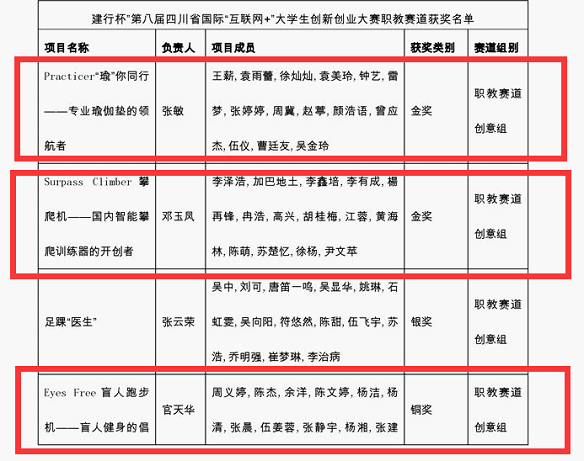 近日,由中共四川省委统战部、四川省教育厅等12个部门联合主办的第八届国际“互联网+”大学生创新创业大赛奖项落下帷幕。教育体育学院师生砥砺奋进、再创佳绩,成功摘取省赛金奖2项、铜奖1项,刷新历史最好成绩。