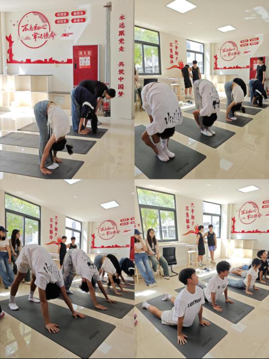 随后的瑜伽训练环节,在舒缓的音乐中,休闲体育专业的学生带领同学们学习了基本的瑜伽体式、呼吸技巧和放松方法。大家通过练习,有效舒展了身体,缓解了学业压力,体验了身心合一的宁静与和谐。