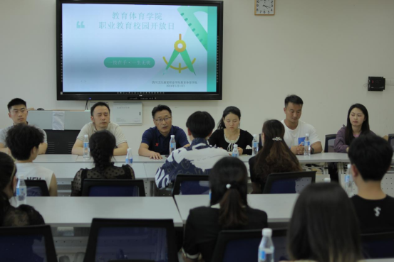 教育体育学院唐院长亲临现场,布置整体活动,带领学生科和各班辅导员及相关专业教师热情接待学生家长,为其讲解各实训室及训练器材使用方法及锻炼效果。