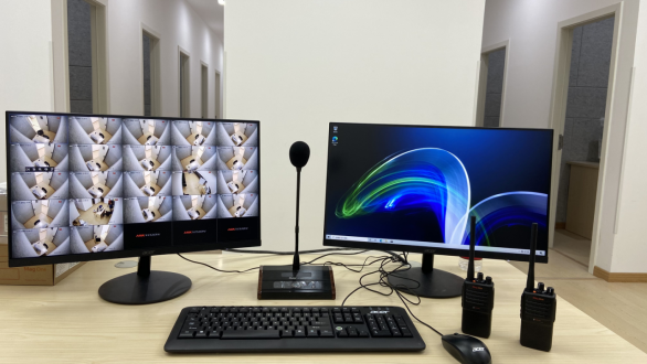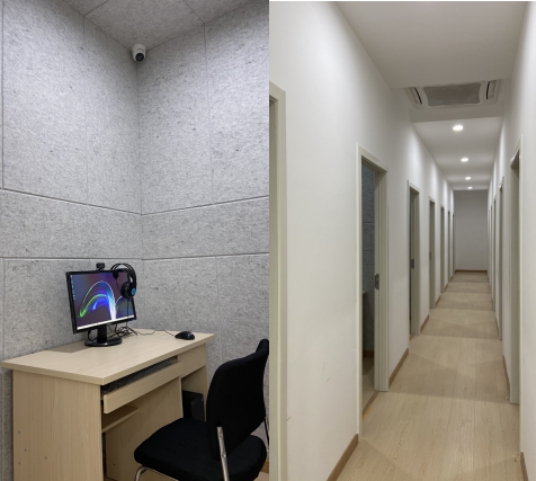目前,普通话水平测试站采用普通话水平测试系统,已建成“考务中心”“普通话测试室”“普通话候测室”和“普通话模拟训练室”。其中,“普通话测试室”共有测试机位20个,可供20人同时进行测试;候测室能容纳同一测试时间段内应试人员等候考试;测试室由20个隔音条件较好的单间构成,做到一机一室,互不干扰;机位装有监控设备,主控台能查看到每个考生的完整考试情况。其次,每间测试室面积适当,通风条件良好;每间测试室门上设有清晰的考场号,考试机统一编号。已按规定将测试使用的横幅、标识、职责、规定等装挂上墙。