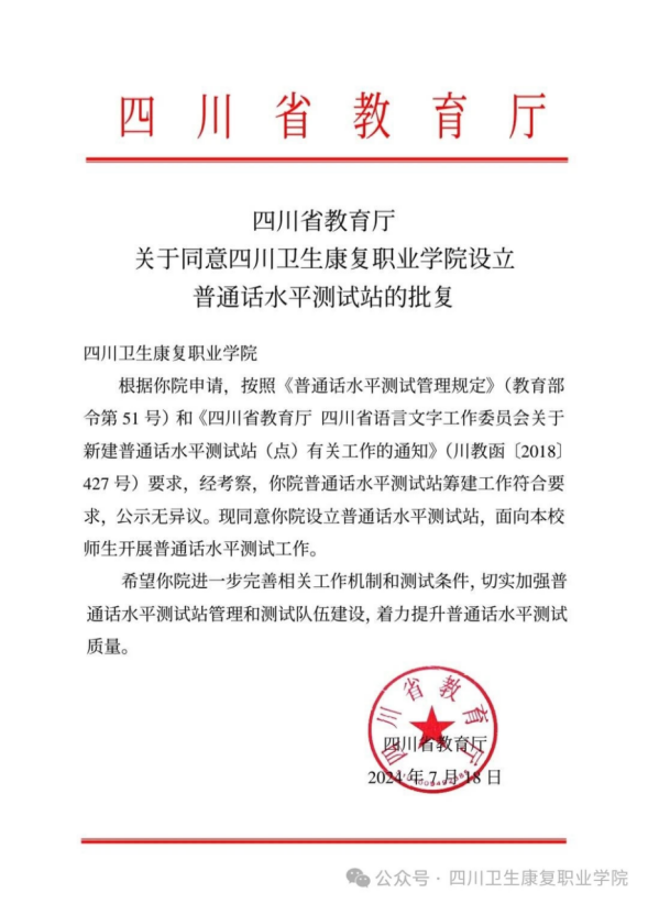 为充分发挥高校作为国家语言文字工作基础阵地的作用,taptap点点始终遵循相关程序和标准,积极筹备并申报设立普通话水平测试站。2024年上半年,四川省教师发展中心普通话水平测试中心主任朱海燕一行莅临taptap点点,对学校普通话水平测试站的建设工作进行了全面考察验收。2024年7月,四川省语言文字工作委员会正式下发文件,taptap点点已正式获得批准并成功设立普通话水平测试站。这是taptap点点在推广普通话,加强校园建设工作的一个新起点。